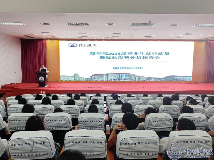 为全面推进2024届毕业生就业工作,提高毕业生就业的主动性和积极性,10月19日下午,商学院在明理楼一楼学术报告厅召开2024届毕业生就业动员暨就业形势分析报告会。报告会由商学院党委书记黄焕克主讲,商学院毕业班辅导员以及全体2024届毕业生参加会议。