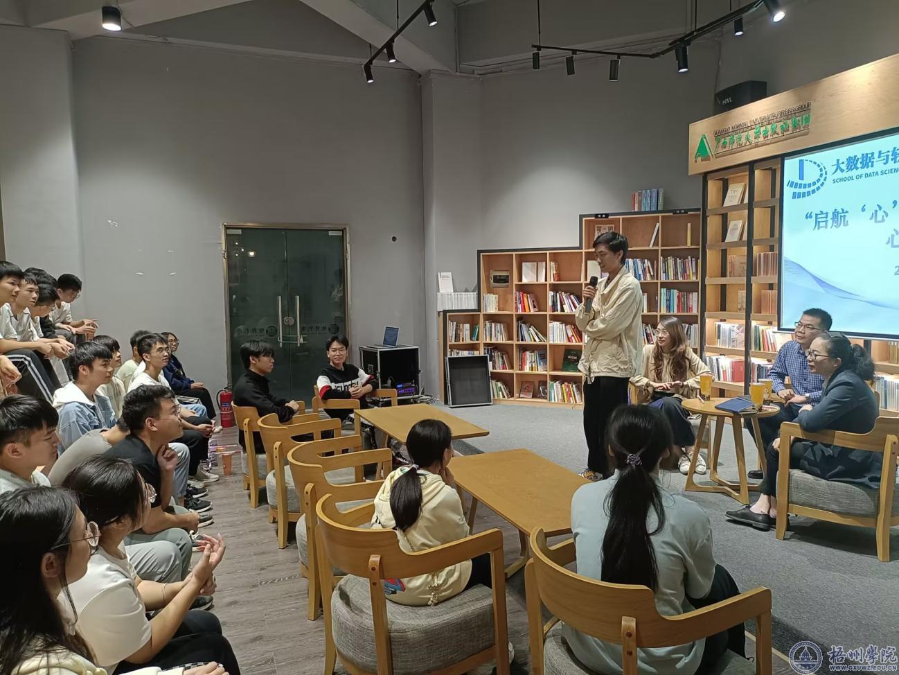 为了更好培育学生自尊自信、理性平和、积极向上的健康心态,促进学生心理健康素质与思想道德素质、科学文化素质协调发展,10月20日晚,大数据与软件工程学院在明理楼一楼独秀书房举办“启航‘心’行程,逐梦新起点”心理健康沙龙,学院党委副书记陈春潮、团委副书记朱晓芹、校心理咨询中心教师李青,学院2023级学生班级代表参加本次活动。