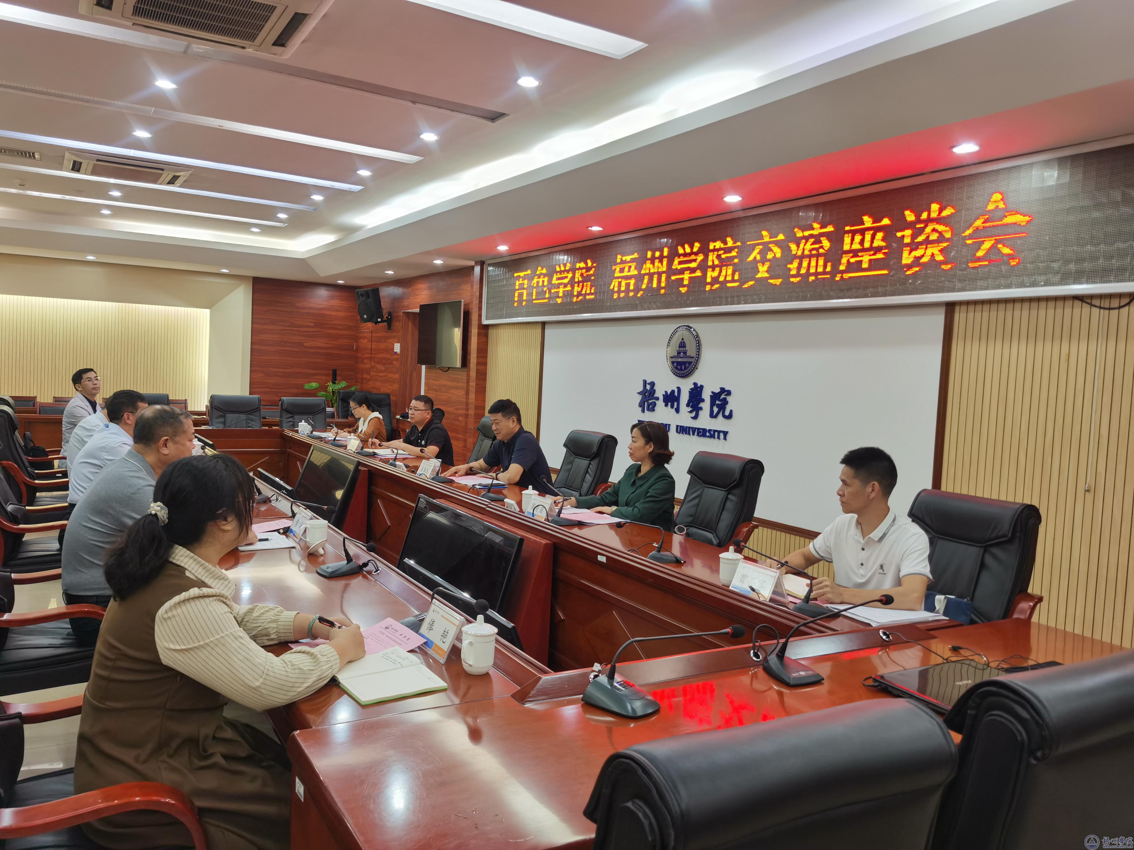 10月20日上午,百色学院副校长吴佩杰一行5人到我校进行交流座谈,副校长麻新纯主持会议,人事处相关负责人参加座谈会。