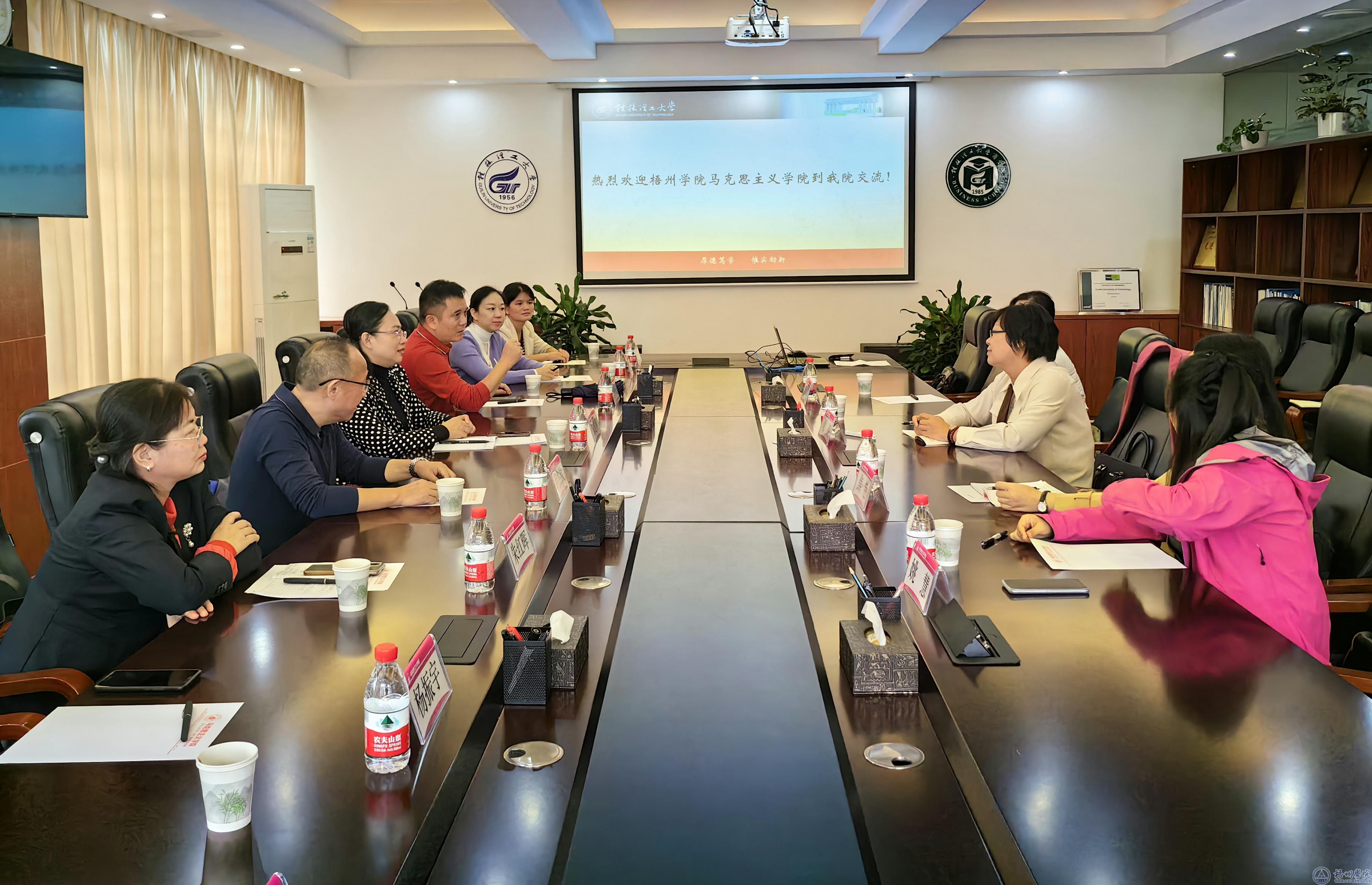 10月20日上午,调研组前往桂林理工大学马院进行调研学习。双方就学院建设、人才培养、课程体系、实践教学、师资队伍建设、教学团队建设、招生、考研与就业等问题进行深入探讨,在交流中,加深了两院的交流与合作,双方达成了相互学习借鉴、互帮互助,共同发展的共识。