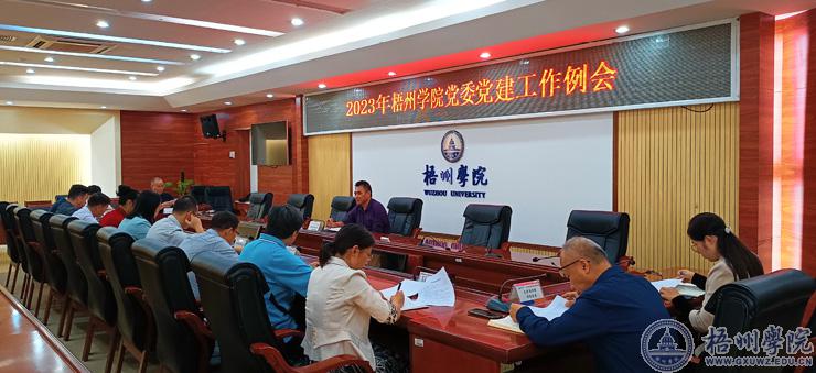 10月24日上午,在明理楼八楼第一会议室召开2023年梧州学院党委党建工作例会。党委组织部、各二级党组织相关负责人参会。