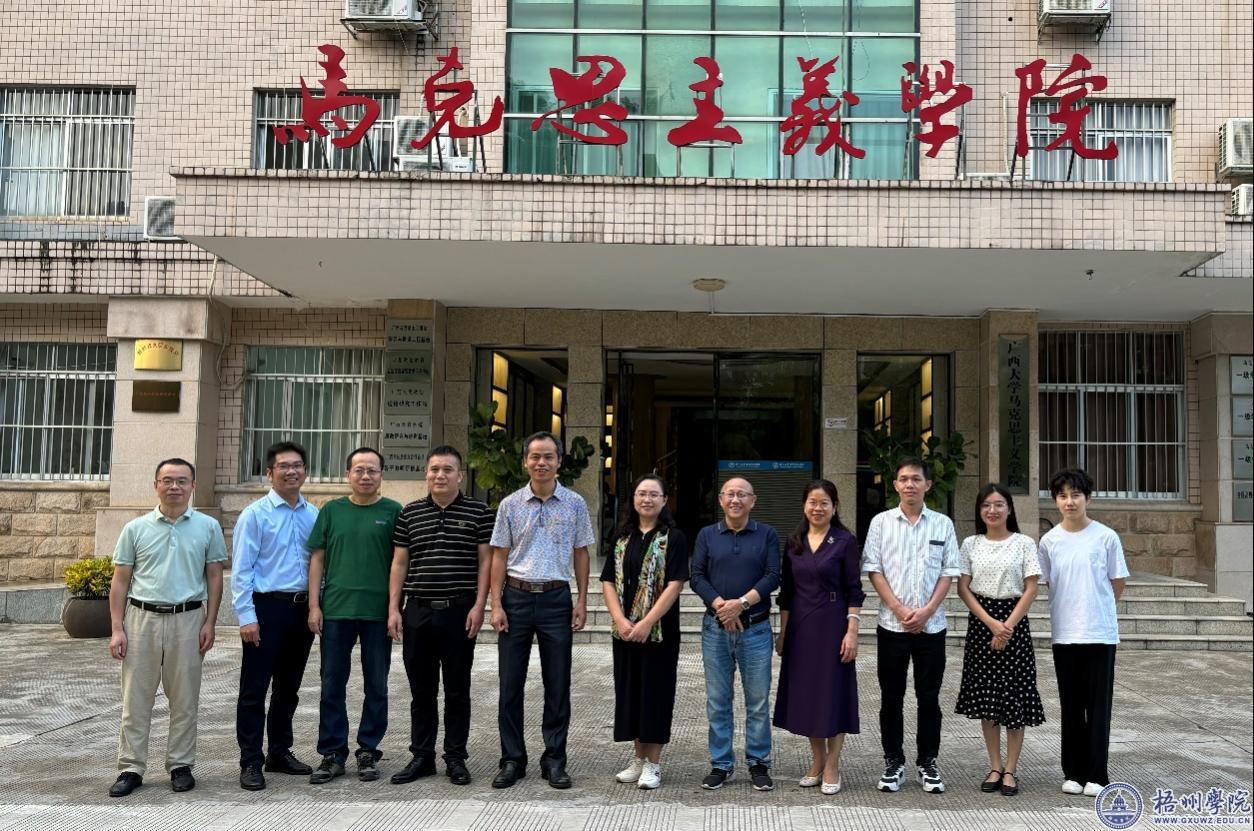为顺利迎接广西普通高等学校本科专业综合评估工作,加强专业建设,11月3日下午,马克思主义学院院长陈健萍、副院长唐景成带领哲学专业教师一行7人赴广西大学马克思主义学院就哲学专业综合评估工作进行学习交流。座谈会由广西大学马克思主义学院党委书记周瑞超主持,副院长陆秀红教授、哲学专业负责人黄小洲教授、思想政治教育专业负责人陈礼军副教授参加会议。
