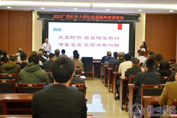 11月16日,由广西壮族自治区社会科学界联合会主办,广西非公有制经济发展研究会联合梧州学院承办的2023年广西社科大讲坛走进梧州宣讲报告会在梧州学院举行。