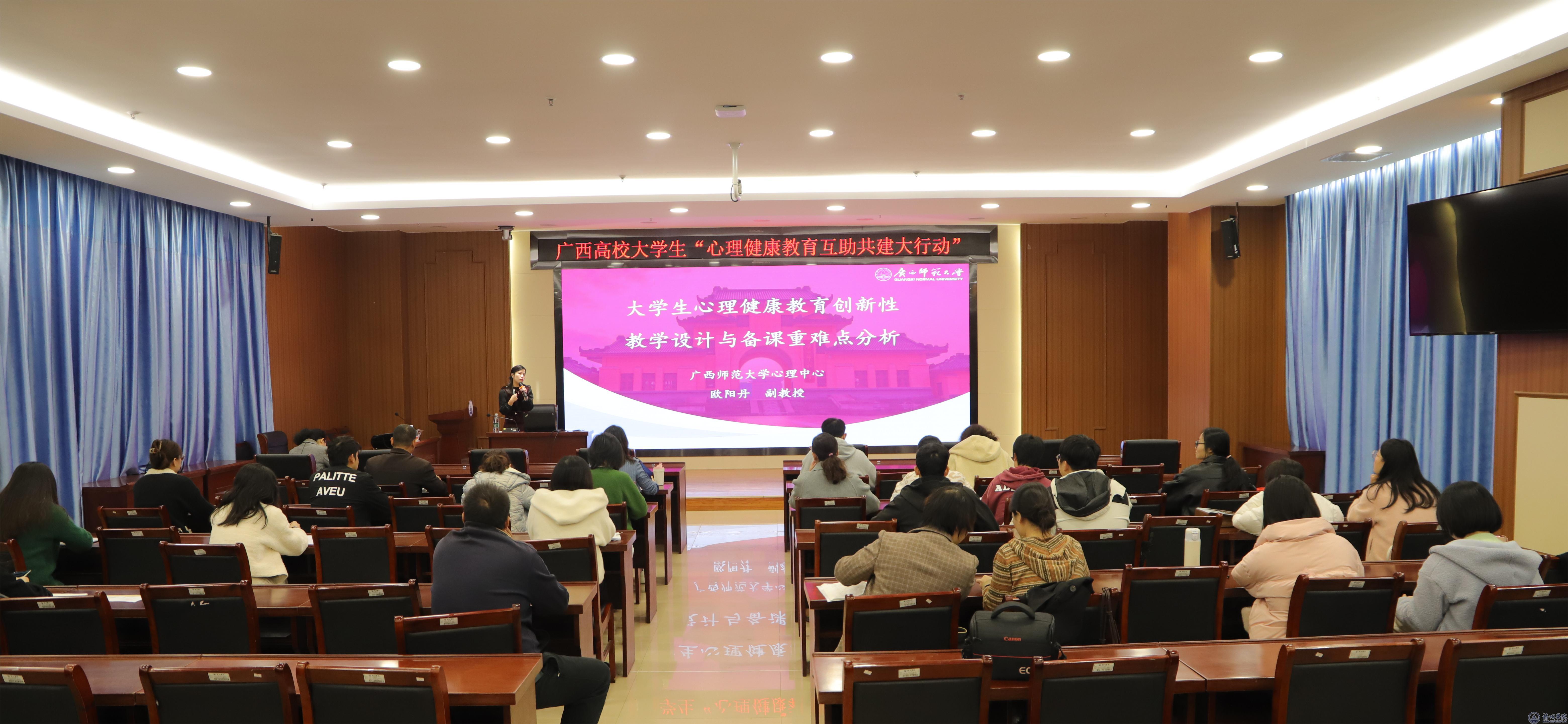 为切实提高本组群共建高校专兼职心理健康教育教师的授课水平,不断提升本组群高校大学生心理健康教育课程教学质量。11月20日上午,学校邀请广西师范大学心理健康中心欧阳丹副教授在明科楼一楼会议室开展以“大学生心理健康教育课程设计”为主题的讲座。来自梧州学院、梧州职业学院、梧州医学高等专科学校等3所共建高校共35名专兼职心理健康教育教师参加了此次培训。