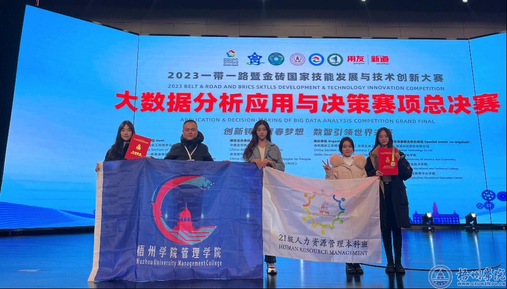 11月26日,2023第七届一带一路暨金砖国家技能发展与技术创新大赛大数据分析应用与决策赛项总决赛(以下简称“金砖全国总决赛”)成功落幕。以2021级人力管理本科班学生组成的团队在金砖全国总决赛人力赛道中荣获二等奖。