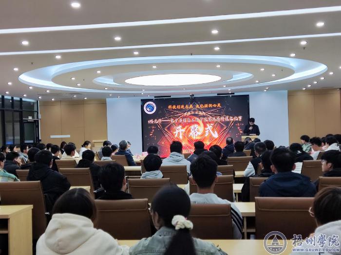 会上,学院党委书记邓小林为活动致辞并介绍科技文化节的活动背景及举办科技文化节对打造学院特色的品牌活动意义。本届科技文化节主要活动内容有:如何申报大创项目经验交流会、电子设计竞赛、科技作品展、教授博士学术讲坛、电子简历设计大赛、“颂歌献给党”演讲比赛、各类学科竞赛经验分享会、诗词接龙大赛等活动。