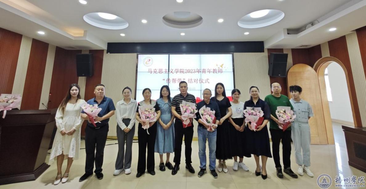 青年教师向师傅们献上鲜花并合影