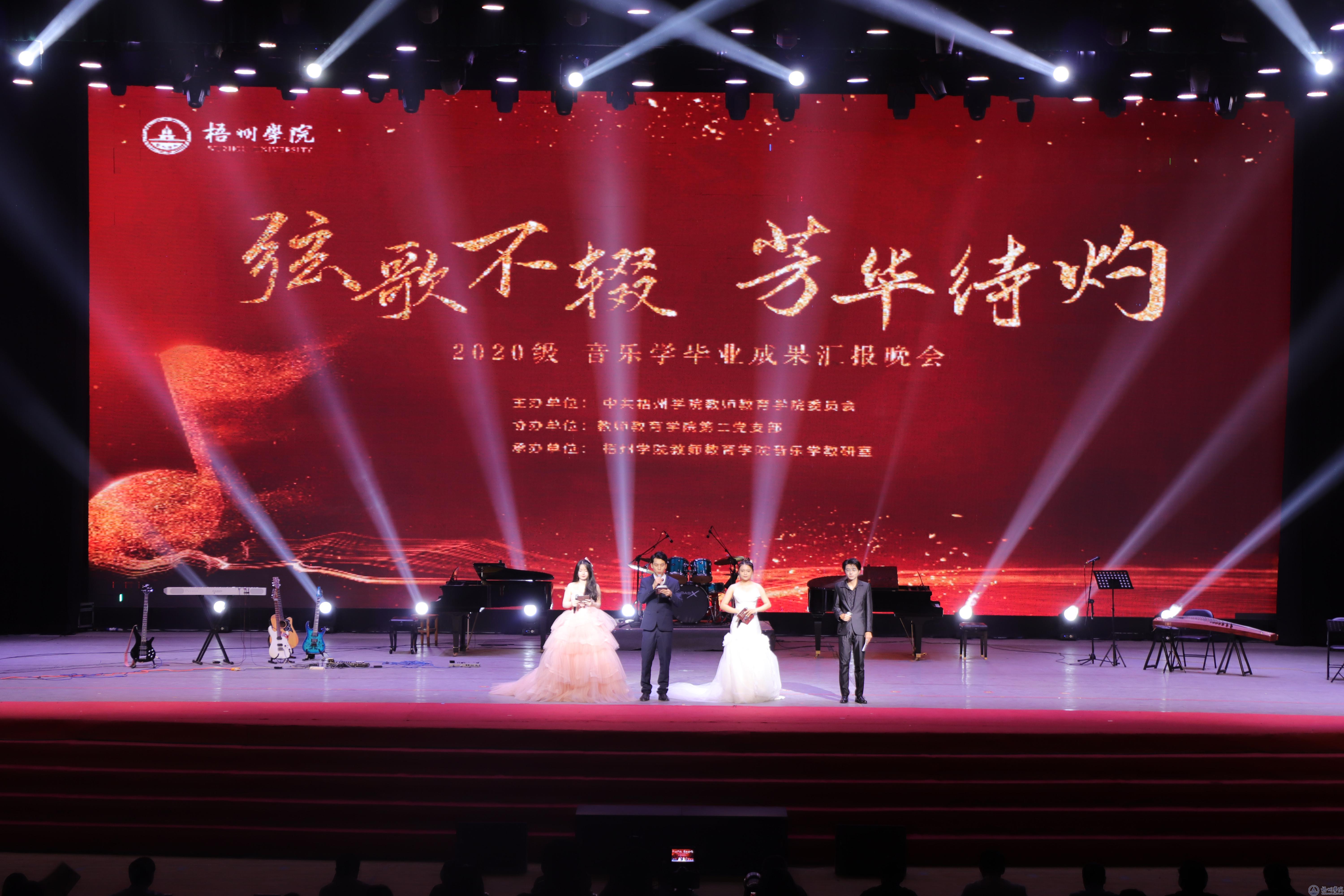 以琴瑟之音会八方来客,12月14日晚,教师教育学院在体育馆三楼举行2020级音乐学专业“弦歌不辍,芳华待灼”毕业成果汇报晚会。校长杨奔,党委副书记梁业华,副校长覃雄彪,梧州市文学艺术界联合会党组书记、主席林敏华,副主席潘彤出席活动,学校各单位、各部门、各二级学院领导、教师、学生,及社会各界人士观看此次演出。