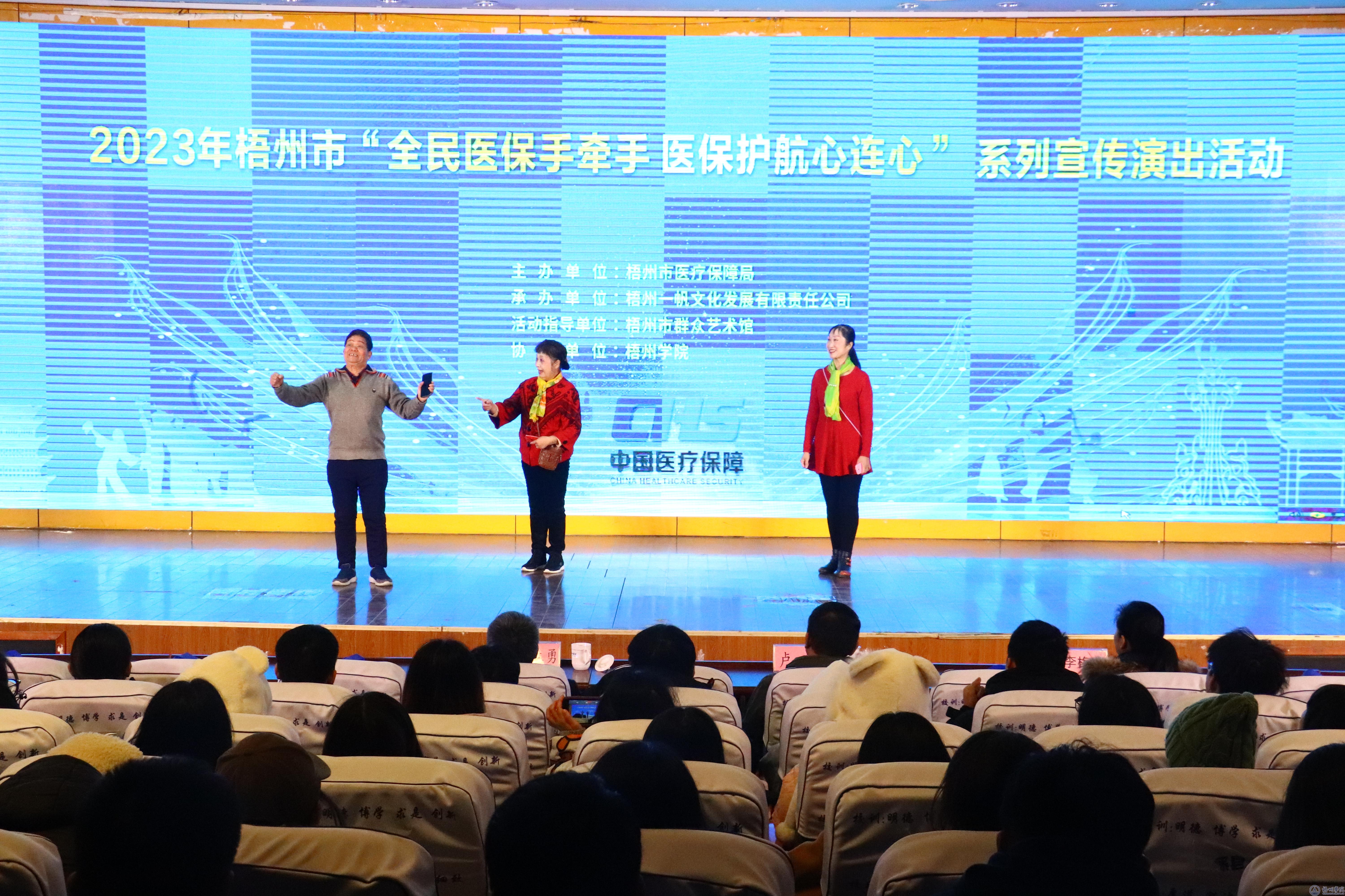 为贯彻落实国家全民参保计划,落实国家医保局、自治区医保局有关大学生参保的文件精神,进一步提高大学生的医保参保意识和医保知识,12月21日下午,学校在明理楼一楼学术报告厅举行“医保政策知识进校园”宣传文艺演出。梧州市市医疗保障局党组成员、副局长卢璐,梧州市群众艺术馆副馆长李梅娜,我校学生工作部(处)、武装部(处)副部长黄立勇观看了文艺演出。