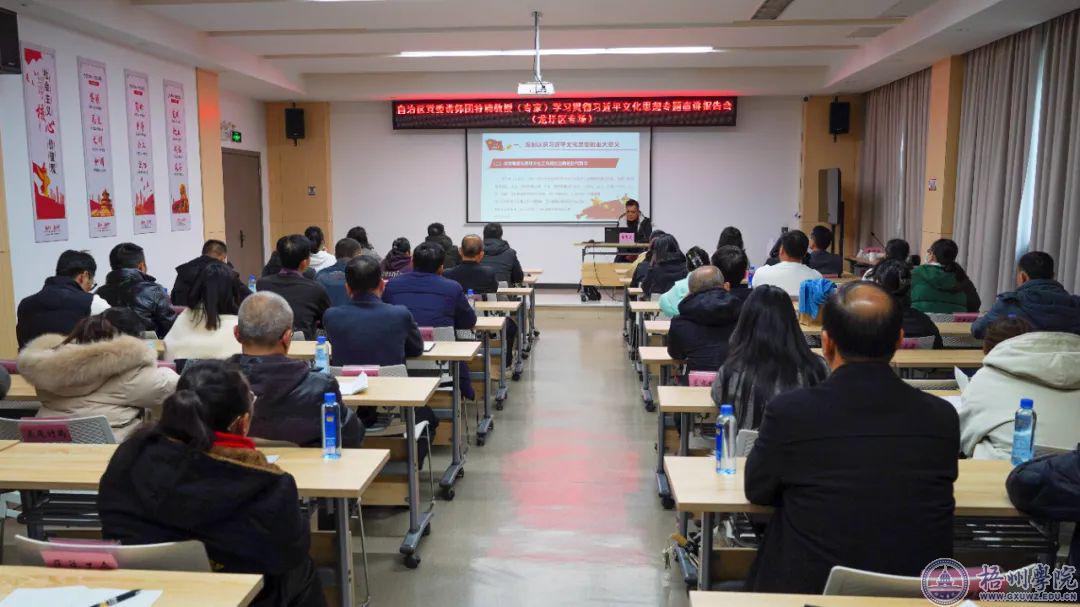 12月19日,自治区党委讲师团特聘教授(专家)学习贯彻习近平文化思想专题宣讲报告会在龙圩区新时代文明实践中心召开,报告会邀请自治区党委讲师团特聘教授(专家)、梧州学院马克思主义学院副院长唐景成作专题宣讲。龙圩区直各单位分管领导、龙圩区各乡镇党委宣传委员共55人参加报告会。
