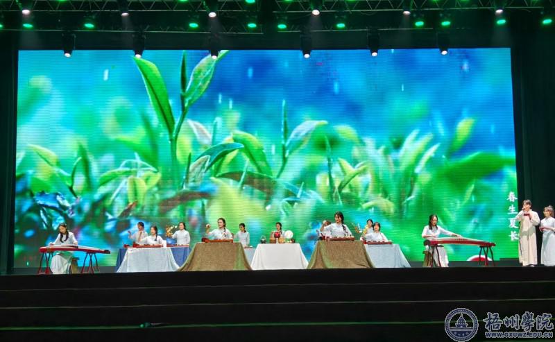 文艺汇演以“师生同乐”为主旨。陈金辉书记带领师生们联袂上演了《我们都是追梦人》、《爱的华尔兹》、《民族团结秀》等多个精彩节目;23食品专升本同学献上光影剧《你好,再见》,带领观众重温了青春岁月;学院茶艺队精心筹备了《情系六堡茶》茶艺秀,结合古筝、朗诵、解说等多种形式,体现了六堡茶产业学院的使命。