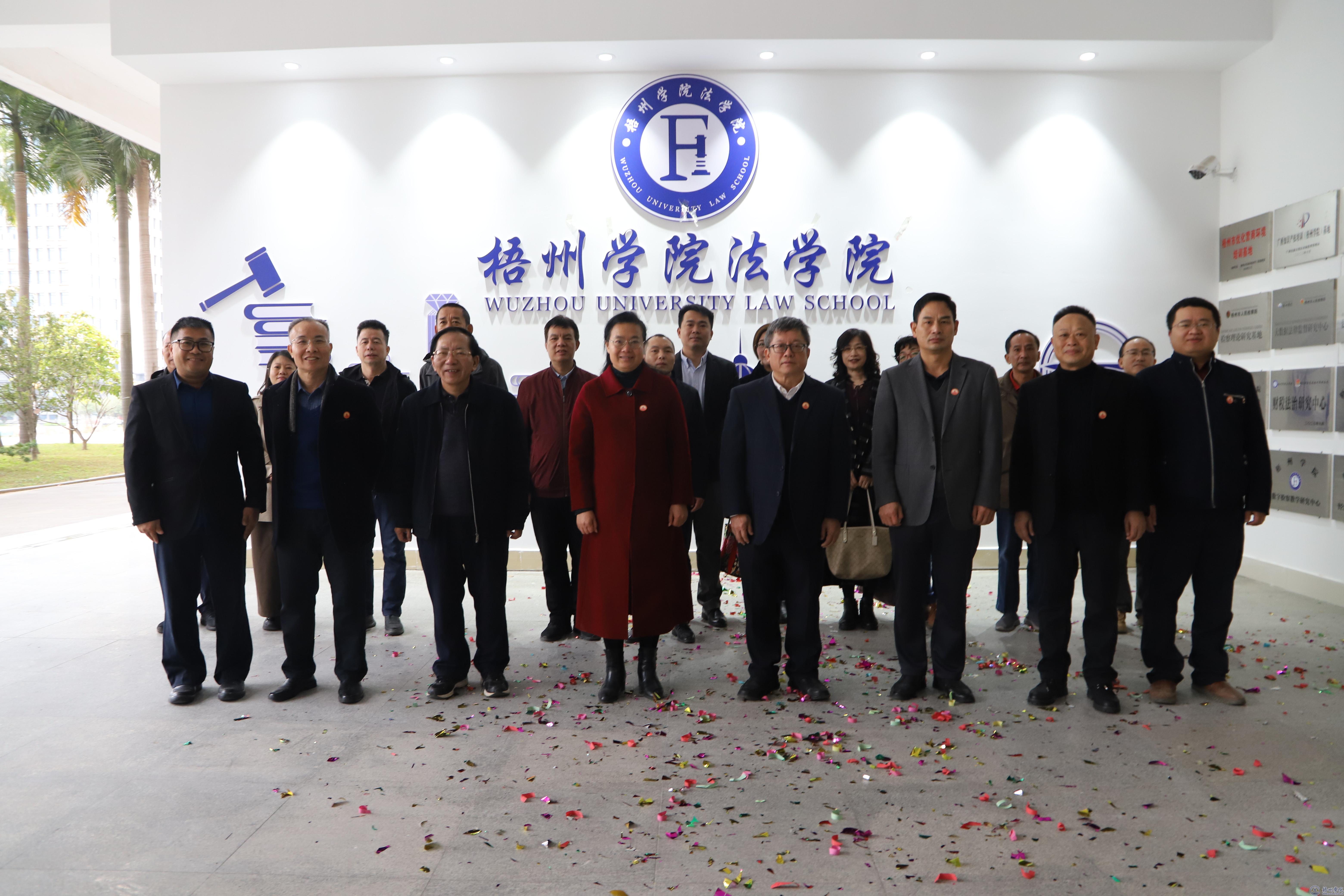 1月5日上午,法学院在明理楼北楼一楼举行办公教学新址启用揭牌仪式。学校党委书记韦仕珍、校长杨奔、副校长邱房贵、副校长范生汝,学校各单位各部门负责人、法学院班子成员及师生代表一起见证这一重要时刻。