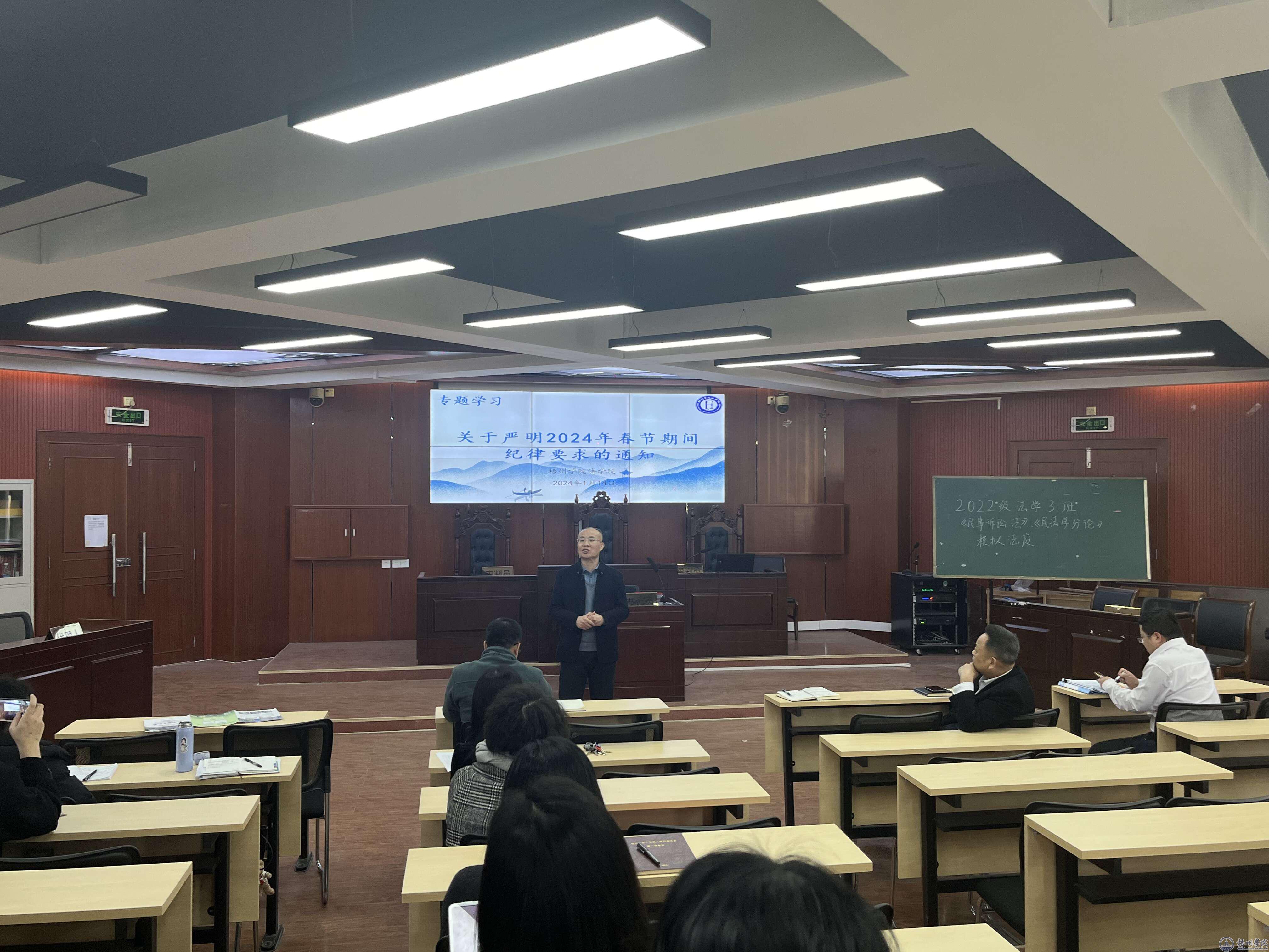 1月14日,法学院在N603召开清廉学校建设专题学习会,学院全体教职员工参加学习。会上,学院党委书记黎祖立传达了学校纪委印发的《关于严明2024年春节期间纪律要求的通知》精神,要求全体教职员工深入贯彻落实中央八项规定精神,抓好抓实节假日期间作风建设,弘扬清风正气,营造良好节日氛围,严防“四风”问题反弹,做到廉洁奉公、守好廉洁关口。会后学院还组织全体教职工观看了电视专题片《持续发力 纵深推进》第三集《强化正风肃纪》。