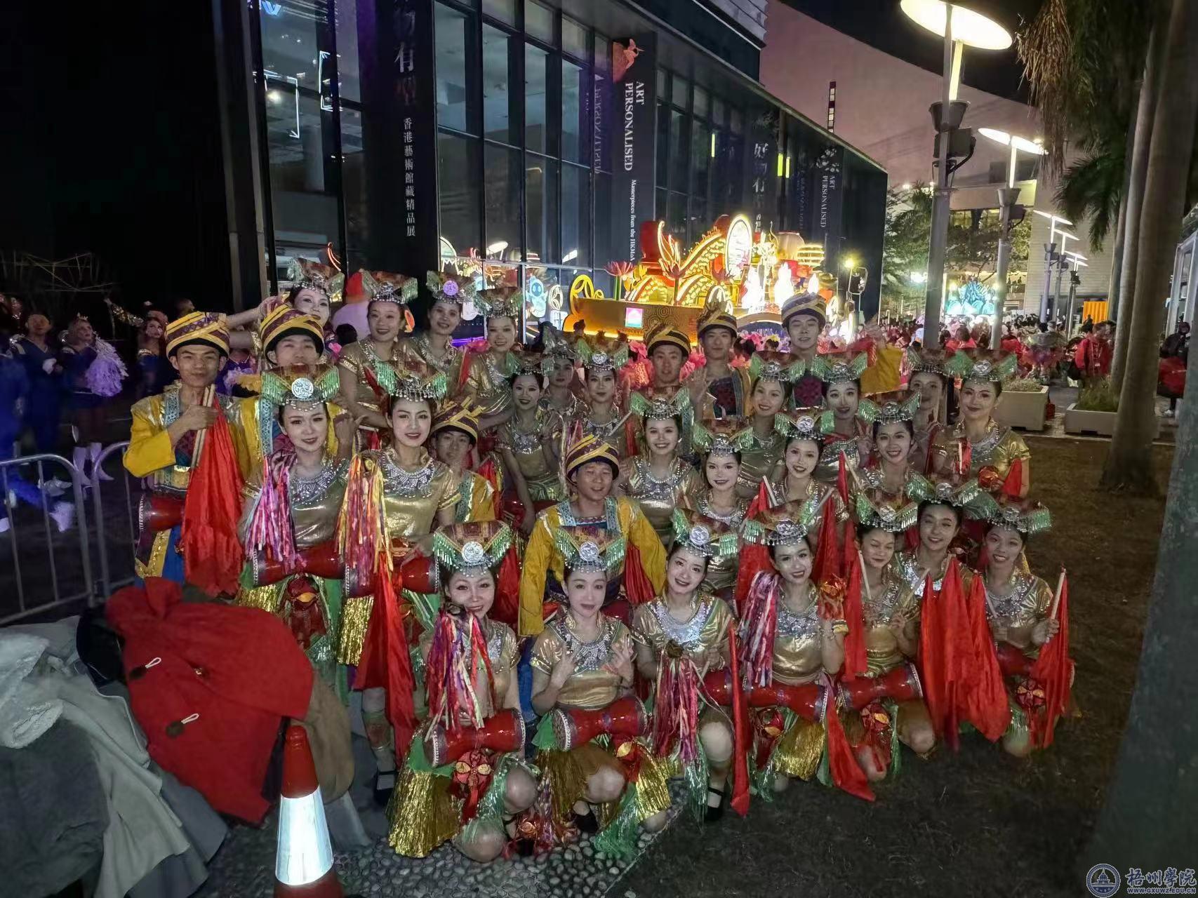 由香港旅游发展局(旅发局)主办,以“龙腾香港贺新岁”为主题的“国泰新春国际汇演之夜”于2月10日(农历大年初一)在香港尖沙咀上演。由梧州学院大学生艺术团舞蹈队成员和广西群众艺术馆演员组成的广西壮族自治区壮美广西鼓乐艺术团代表广西应邀参加表演,与13支香港本地表演队伍及来自中国内地、美国、荷兰、日本、西班牙、德国、韩国、菲律宾、意大利、澳大利亚、新西兰共16支表演团队同台献艺,共贺龙年新春佳节。