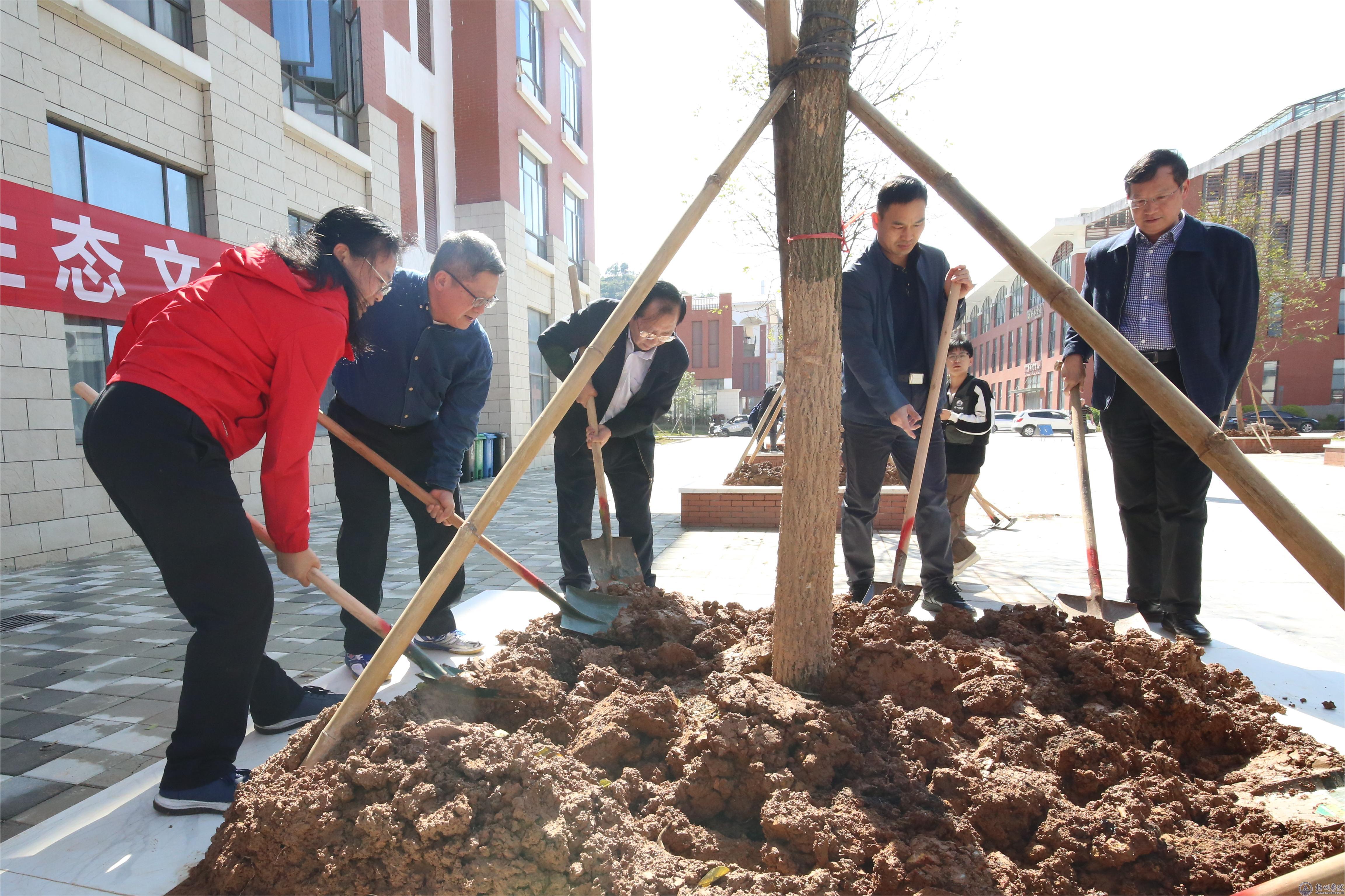 春暖花开三月天,植树添绿正当时。3月12日下午,学校在北片区实训楼前和光华片区道路两旁开展植树活动。学校领导韦仕珍、杨奔、邱房贵、麻新纯、范生汝,各单位、各部门教职员工代表、学生代表共100余人参加此次植树活动。