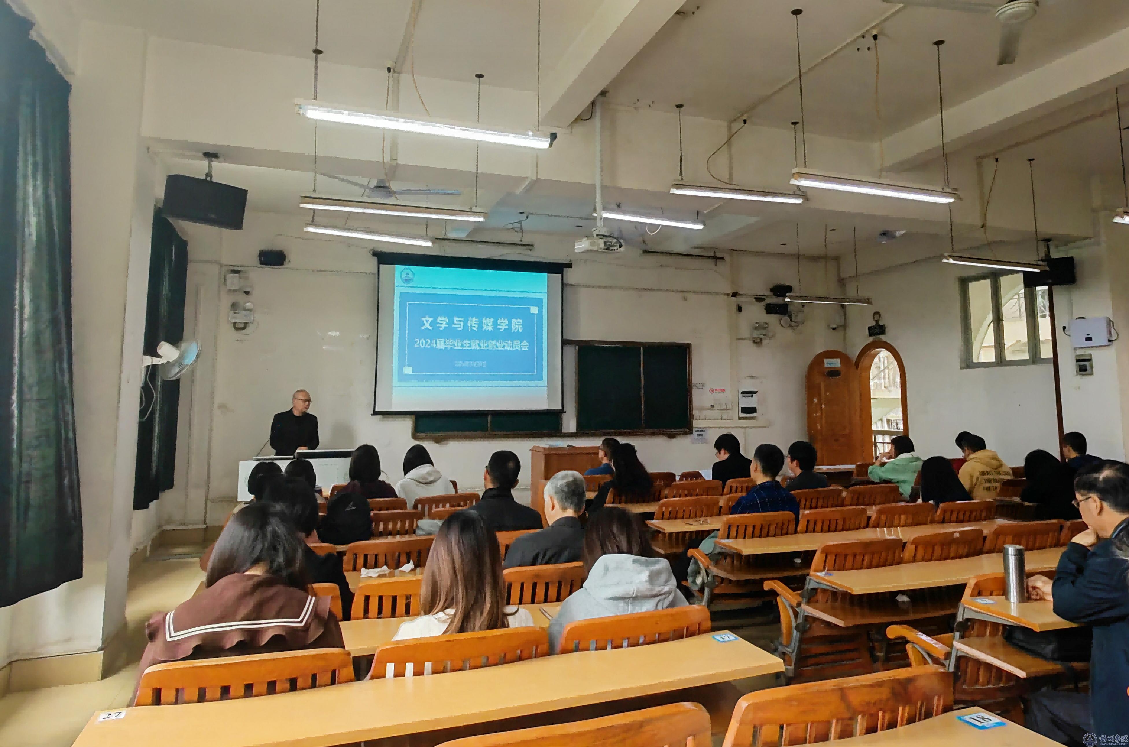 3月20日,文学与传媒学院在明理楼S202教室召开2024届毕业生就业创业工作动员会,进一步落实学院2024届毕业生就业创业工作实施方案,切实加大毕业生就业工作推进力度。学院党委书记梁宏云、主持工作副院长段祥贵、副院长谢友中,学院全体教师参加会议。
