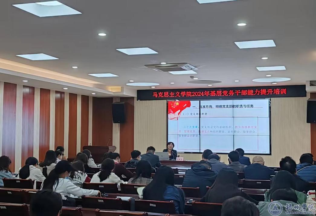 为全面贯彻落实党的二十大和二十届二中全会精神,深入推进新时代党的建设新的伟大工程,进一步夯实基层党建工作基础,提高基层党务干部业务能力,推动基层党建“五基三化”走深走实,全面提升基层党建整体效能,3月20日下午,马克思主义学院在明理楼7楼视频会议室开展了2024年基层党务干部能力提升培训工作。培训邀请学校党委组织部副部长刘洪君作专题辅导报告,马克思主义学院党委书记张朝松主持,班子成员和全体教师、学生党员参加了培训。
