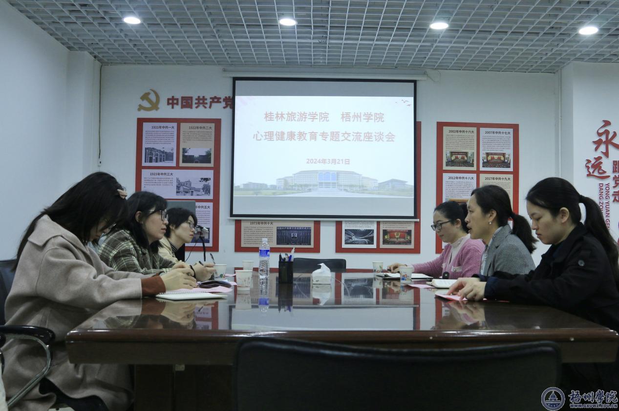 3月21日,桂林旅游学院大学生心理健康教育与咨询中心主任周婧一行3人到我校考察交流。学生工作部(处)相关负责人参加交流活动。