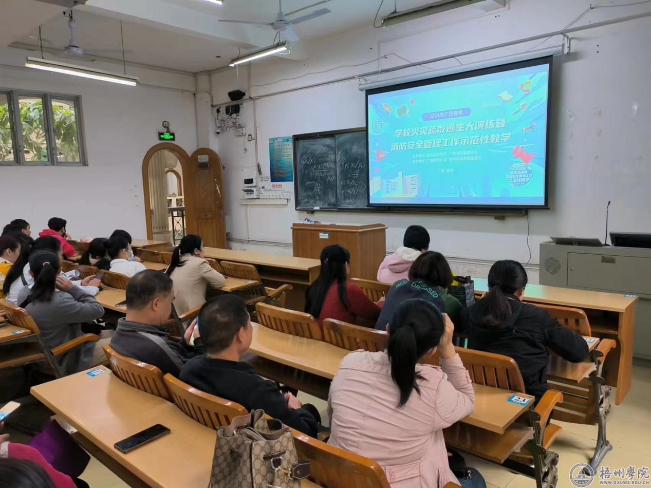 为了提高宿舍管理员的消防安全应急反应和火场逃生能力,普及消防安全知识,增强消防安全意识和火灾应急处理能力,3月22日,学生工作部(处)组织全体宿舍管理员在明理楼S-204教室收看“2024年全区春季学校火灾疏散逃生大演练暨消防安全管理工作示范性教学”网络直播。