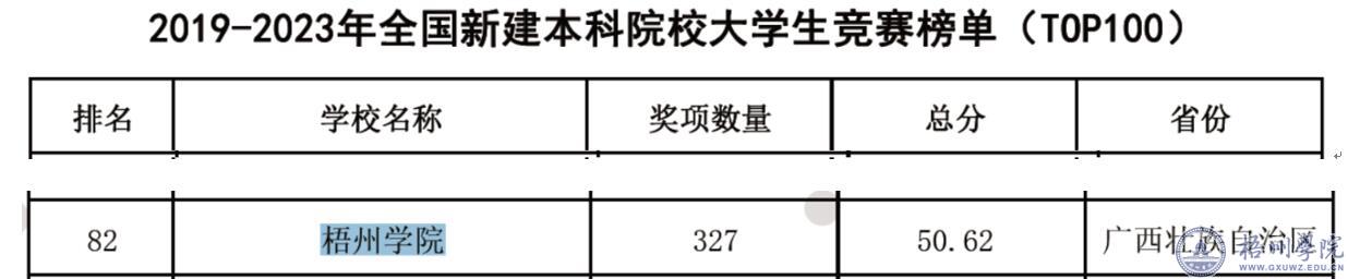 2024年3月21日,中国高等教育学会发布了《2023全国普通高校大学生竞赛分析报告》,全国共1218所本科院校被纳入该分析报告。在“2019—2023年全国新建本科院校大学生竞赛榜单(TOP100)”中,我校位列第82位。根据中国高等教育学会的统计数据,我校2023年学科竞赛获奖数比2022年增加超过100项,达到327项,在我区入围该榜单的6所高校中排第3名。