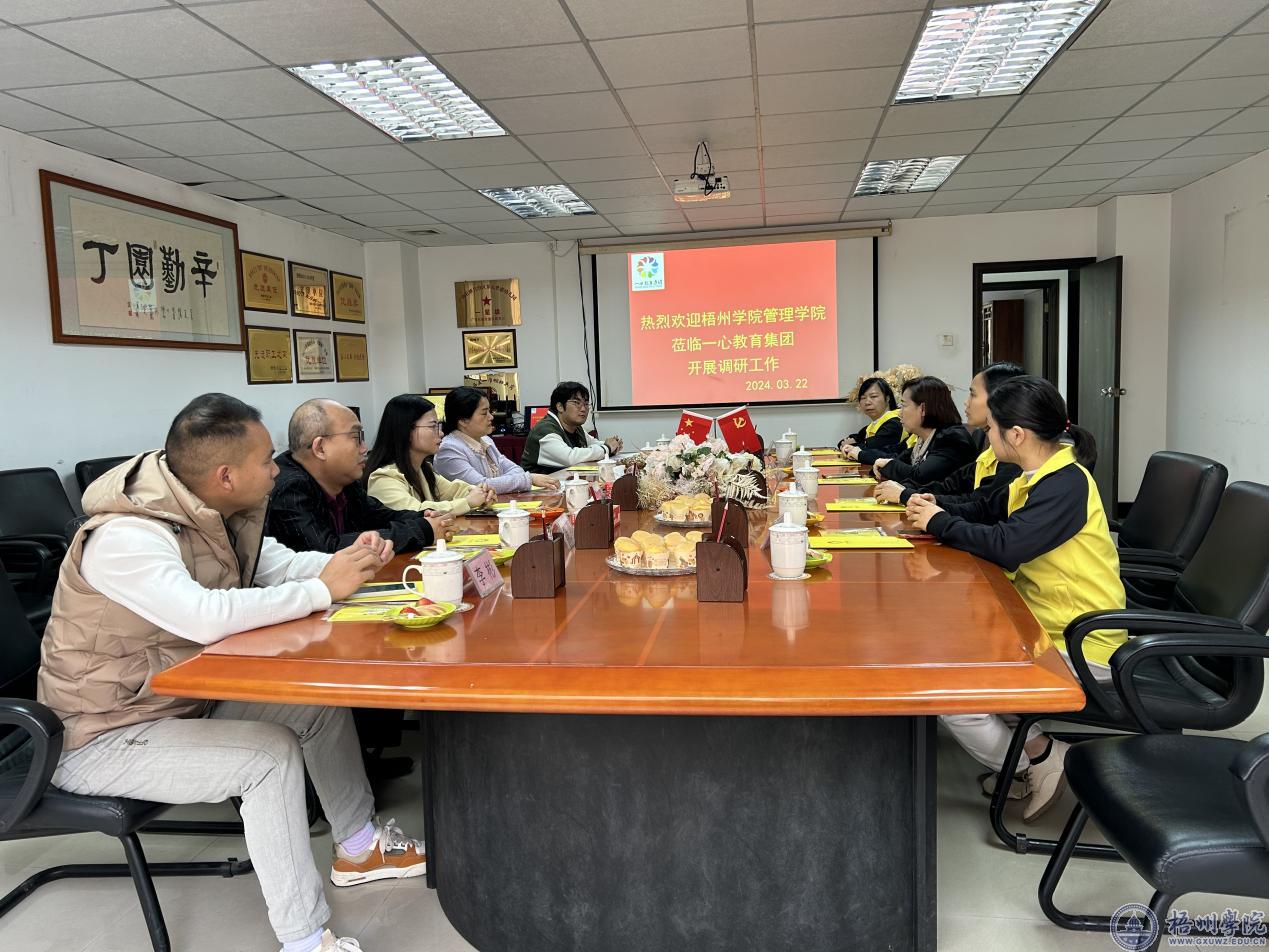 3月22日,管理学院院长张堂云带队到梧州市一心教育集团开展走访调研,商谈校企合作等事宜。