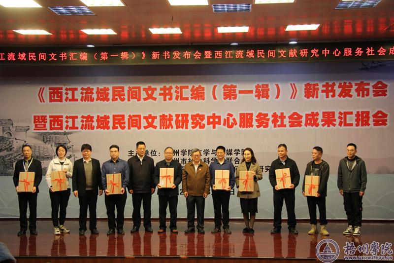 黄恩对《西江流域民间文书汇编(第一辑)》的问世推出表示热烈祝贺。他表示,《汇编》是研究西江流域文化和岭南文化的重要文献,大力宣传、积极运用好《汇编》,对深挖梧州市丰厚独特的历史文化底蕴,打造岭南文化名城,将起到积极和重要的推动作用。他希望学校西江流域民间文献研究中心与市社科联持续做好西江流域民间文书汇编工作,继续加强系统研究、解读利用,让梧州岭南文化进一步“活”起来,“秀”起来。