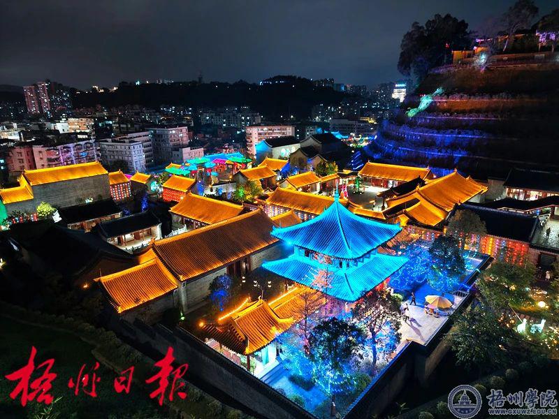 4月4日晚,梧州明朝两广总督府夜灯璀璨,市民游客在景区内游玩观赏。本报记者 李鸿荣摄