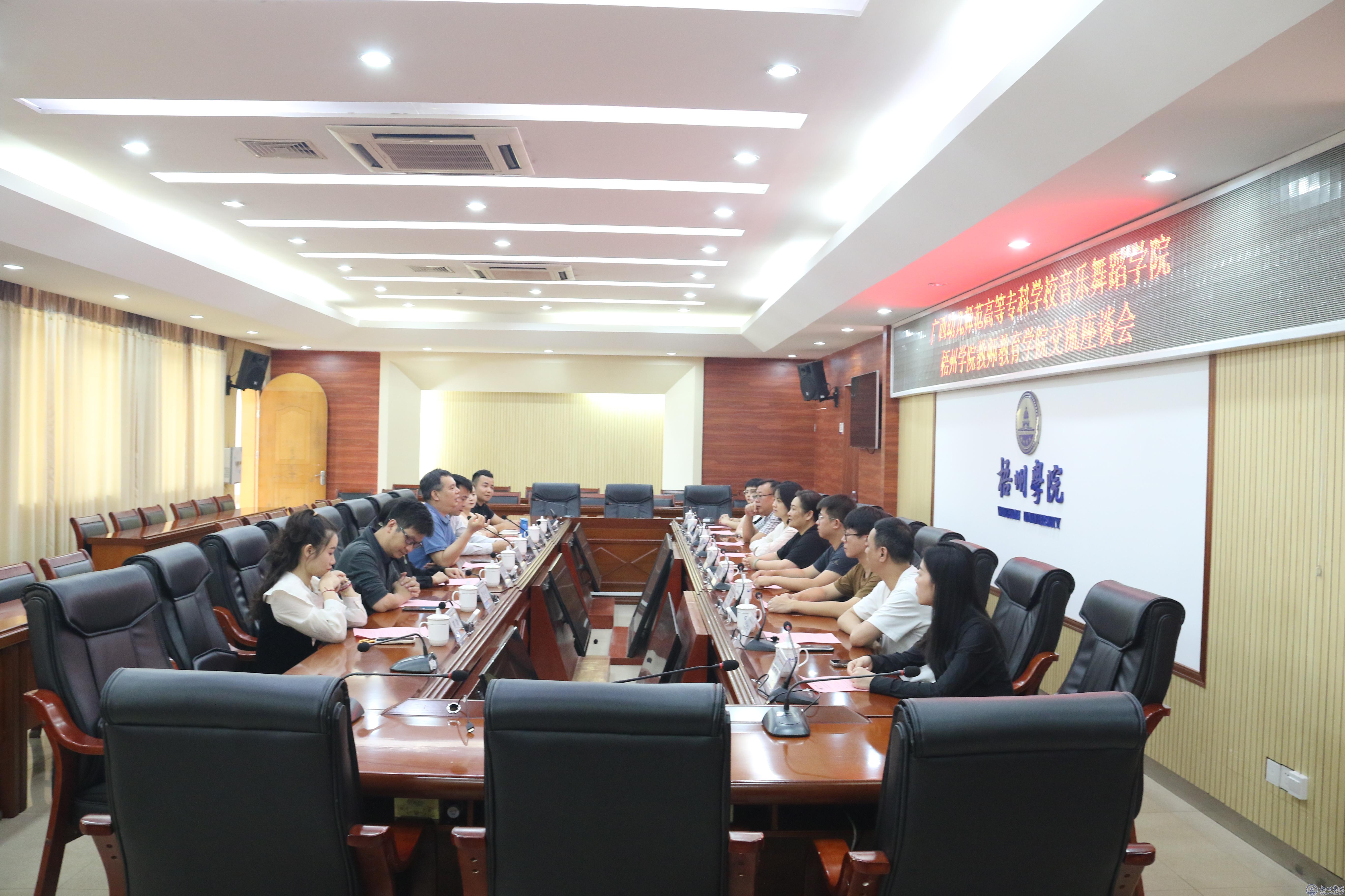 会上,我校教师教育学院院长谢龙华介绍了学院的发展历程、人才培养定位、专业设置、师资队伍等情况。林露书记介绍了广西幼儿师范高等专科学校音乐舞蹈学院在人才培养模式、产业学院建设等方面的特色亮点和此次交流目的。谢龙华院长表示,希望双方加强沟通与交流,合作共赢,共谋发展。双方就专升本招生情况、专业特色方面、人才培养等工作展开深入交流。双方还就应用型人才培养、学生就业、课程建设、教育教学管理等方面展开了广泛深入的沟通与交流。