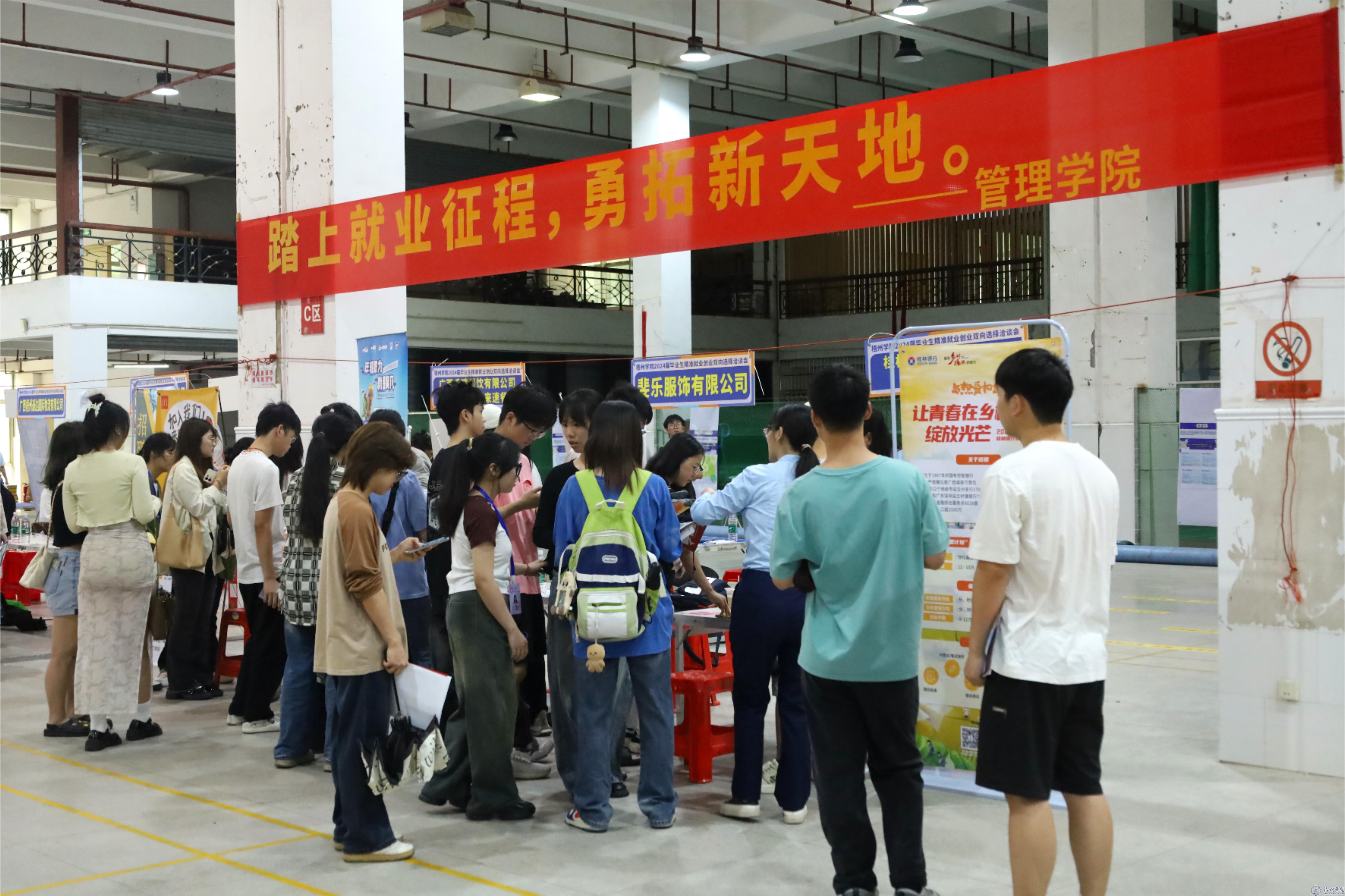 为做好我校2024届毕业生就业工作,4月21日上午,学院在体育馆一楼举办“精准帮扶促就业”2024届毕业生双向选择洽谈会(以下简称双选会)。此次双选会由学生工作部(处)主办,经济学院、管理学院承办。