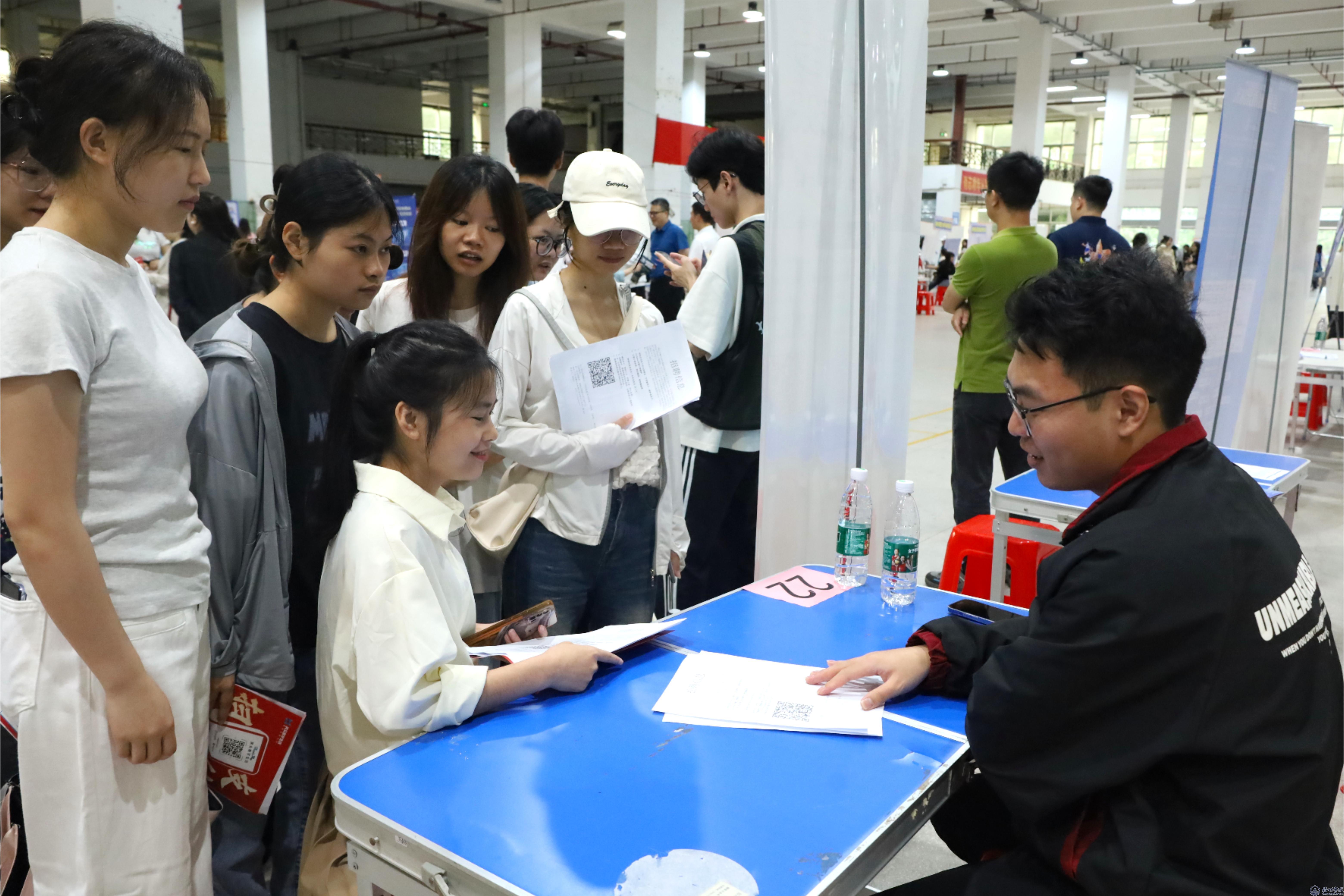 “贵公司的招聘要求是什么?”“我符合贵公司的招聘要求吗?”双选会现场,毕业生积极了解心仪的企业单位相关信息,踊跃的递上求职简历,希望得到一份心仪的工作。