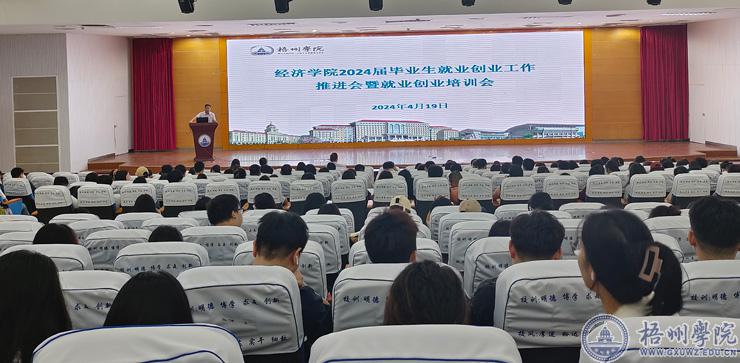 4月19日,经济学院在明理楼一楼学术报告厅召开2024届毕业生就业创业工作推进会暨就业创业培训会。学院党委书记黄焕克、党委副书记卢桂吉、毕业班辅导员以及2024届全体毕业班学生参加会议。