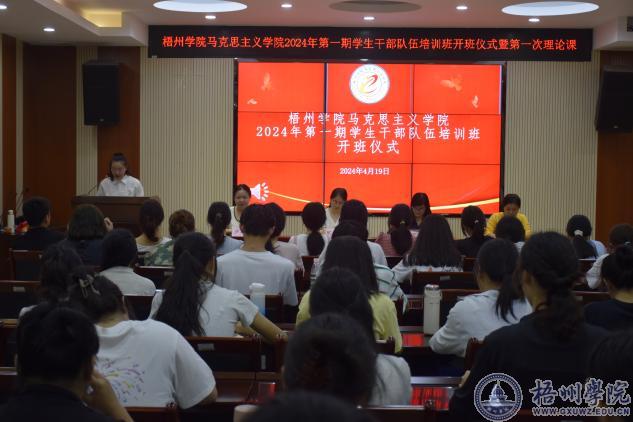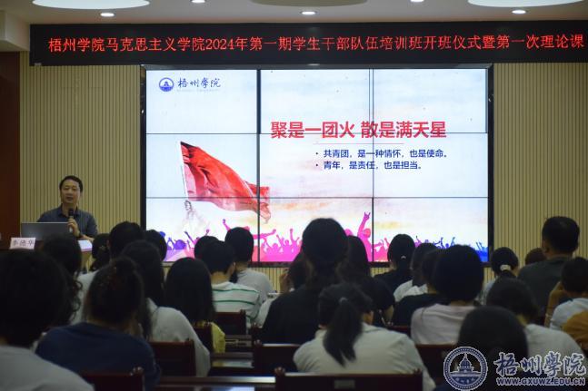 为学习贯彻习近平总书记关于青年工作的重要思想,夯实基层团学组织规范化建设,提升学生干部综合素质和工作能力,4月19日,马克思主义学院在明理楼七楼视频会议室举办2024年第一期学生干部培训班开班仪式暨第一次理论课培训。培训班学员由学院团学、社团组织及各班的主要学生干部组成。