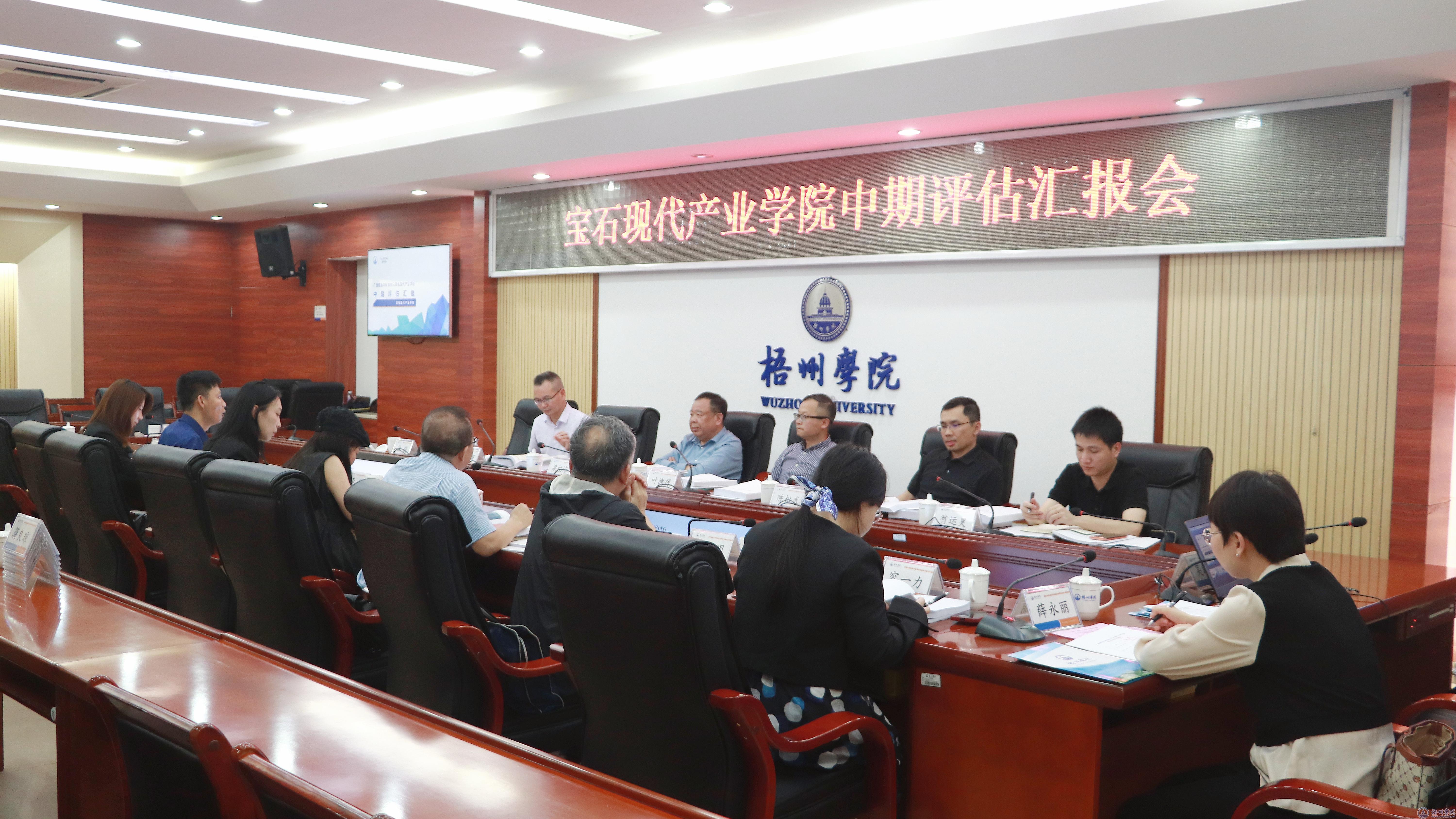 会上,宝石现代产业学院建设相关负责人吴海彪汇报了学院的建设情况。专家们从现代产业学院建设成效、财政经费使用情况、现代产业学院建设痛点和探索等多个方面进行了评估。