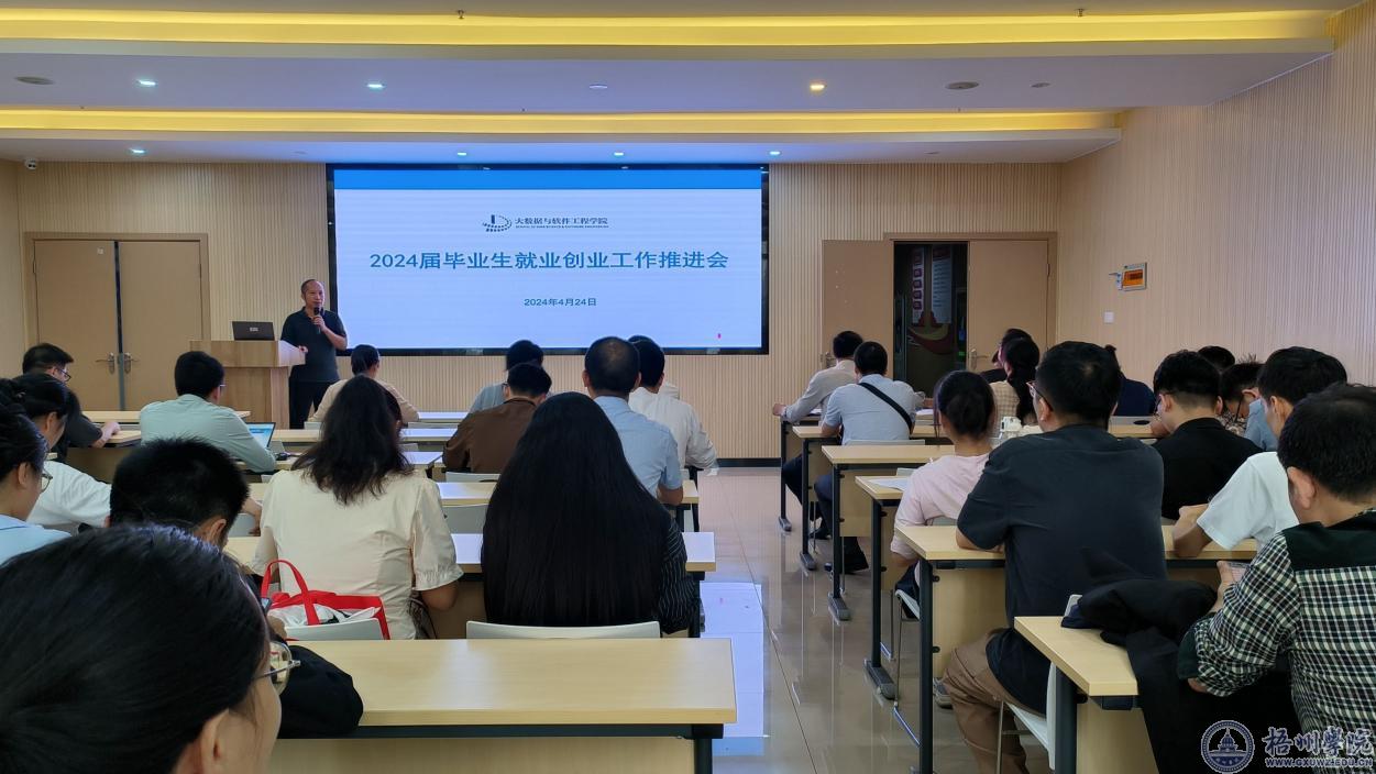 为进一步做好学院2024届毕业生就业工作,切实提升就业工作质量,近日大数据与软件工程学院在K902会议室召开了2024届毕业生就业工作推进会,全体教工参加会议。