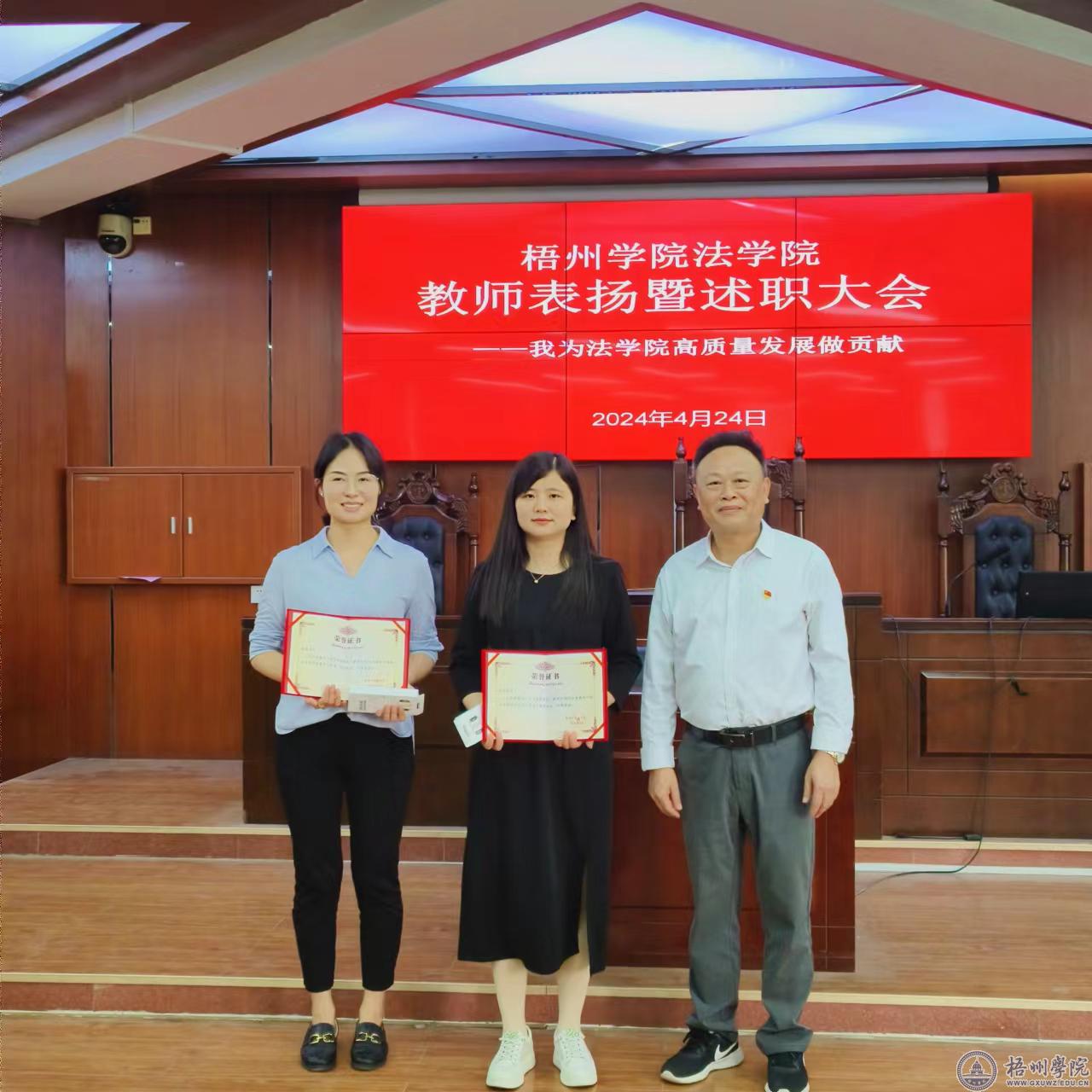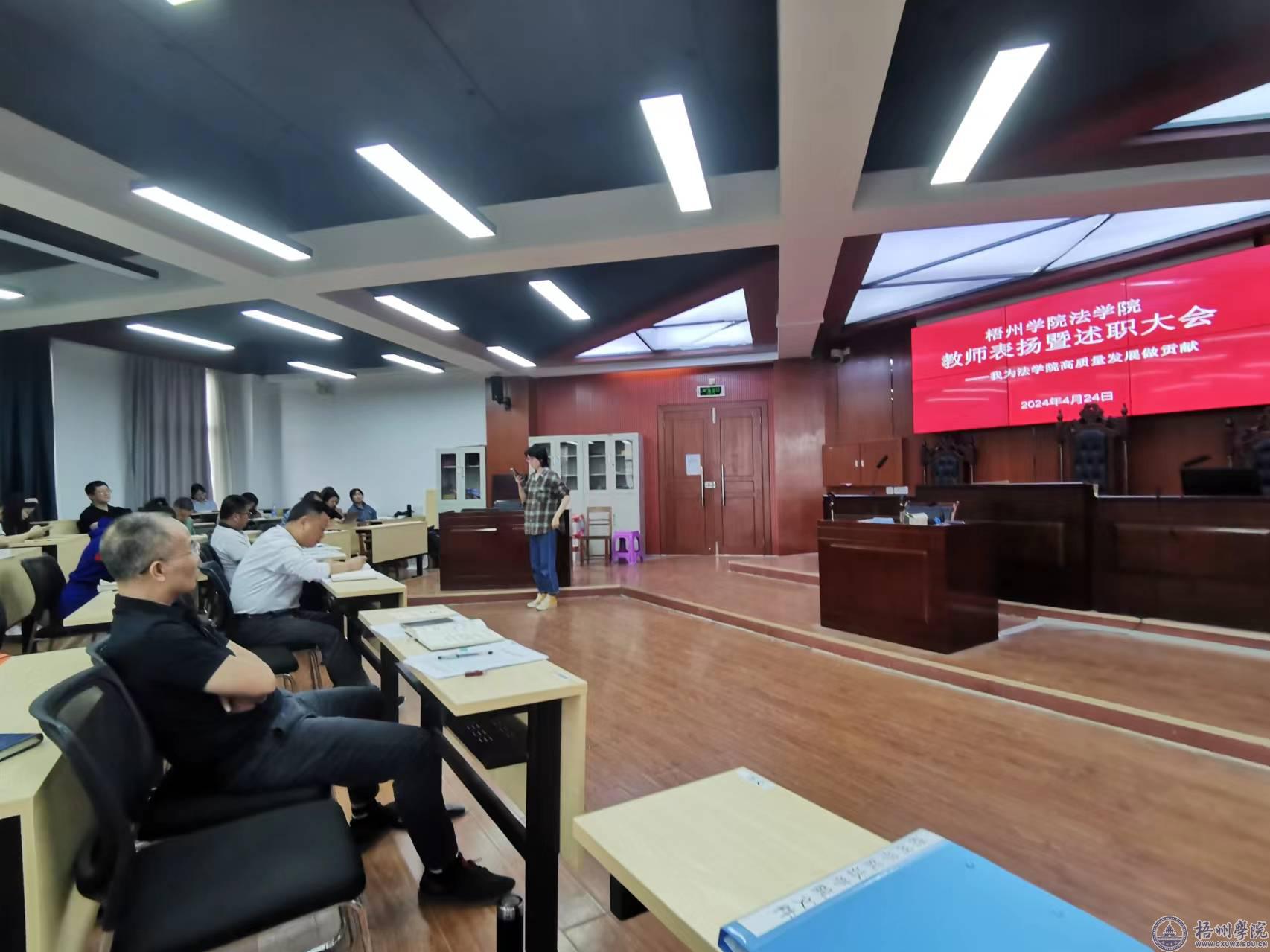 4月24日下午,法学院召开教师表扬暨述职大会,会议主题为“我为法学院高质量发展作贡献”,通过表彰优秀教师、促进教师间的交流学习,推动法学院的高质量发展。法学院班子成员、全体教职工出席会议,各学生班级学习委员参加会议。