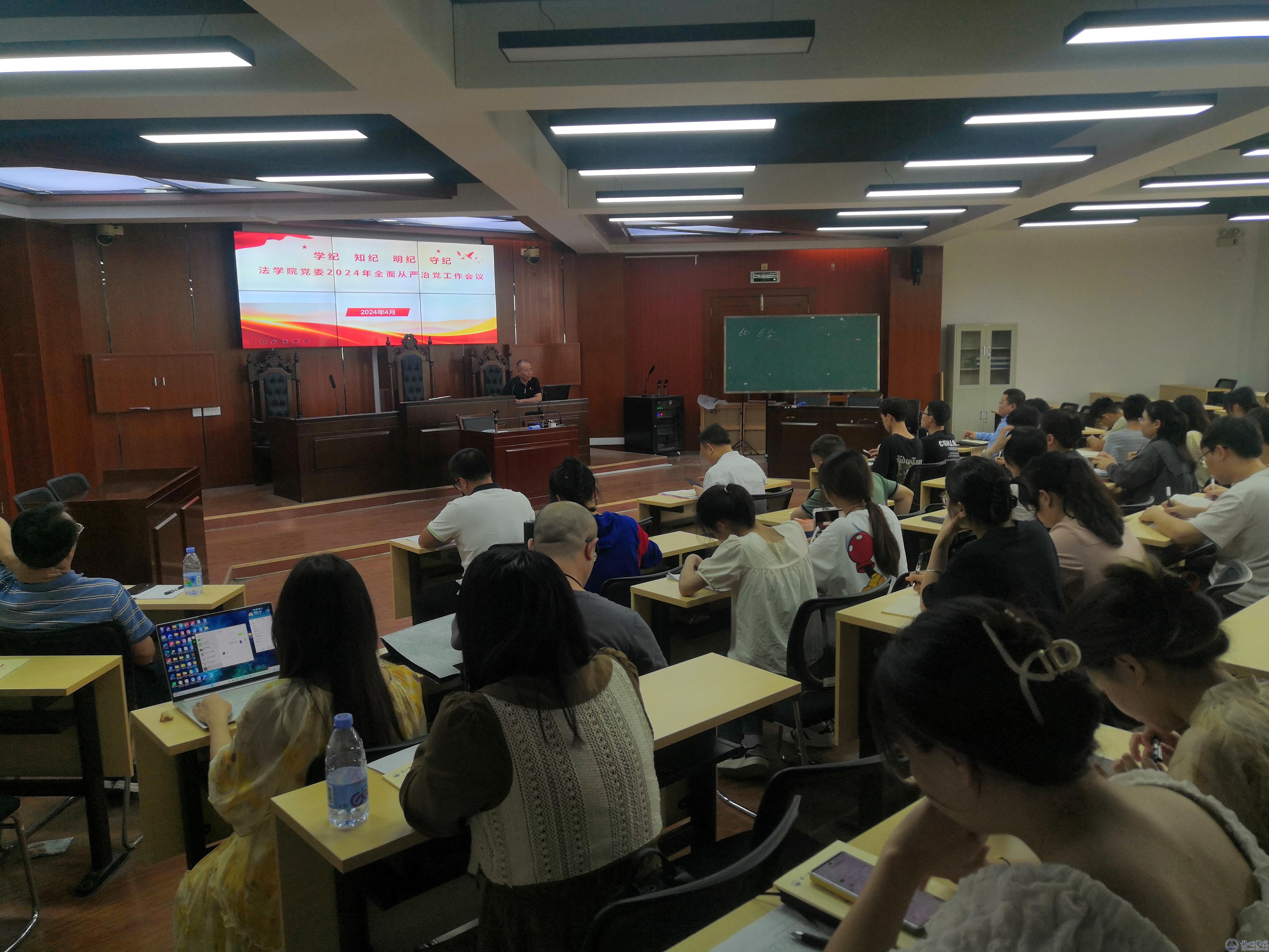 4月24日,法学院党委在明理楼N603召开2024年全面从严治党工作会议,会议由法学院党委书记黎祖立主持,法学院全体师生党员参加。