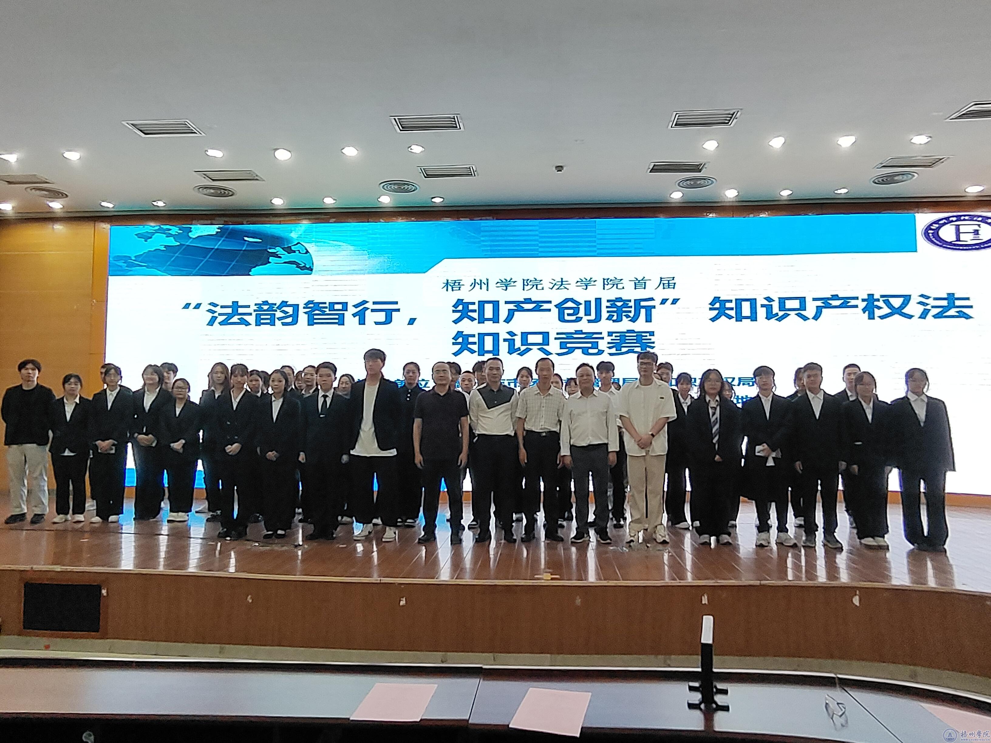 4月25日晚上,在梧州市市场监督管理局(知识产权局)的指导下,由广西知识产权培训(梧州学院)基地主办,我校法学院、科研处、继续教育学院承办的法学院首届“法韵智行,知产创新”知识产权法知识竞赛的决赛圆满落幕。梧州市知识产权局副局长黄成林、科研处副处长方昌敢,法学院院长骆庆国、副院长白续辉等出席竞赛活动。