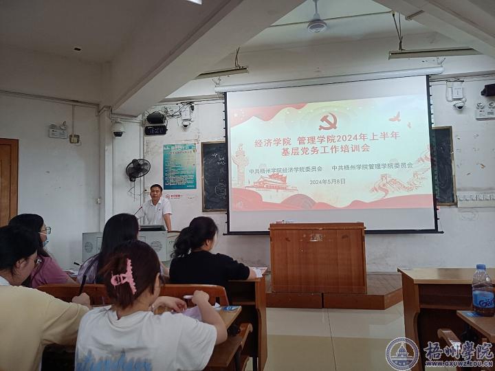 5月8日下午,经济学院党委、管理学院党委在明理楼S603联合召开2024年上半年基层党务工作培训会,本次培训由经济学院党委书记黄焕克主讲,两个学院的学生党支部书记、支部委员、大学生党建管理服务中心全体成员130多人参加培训。