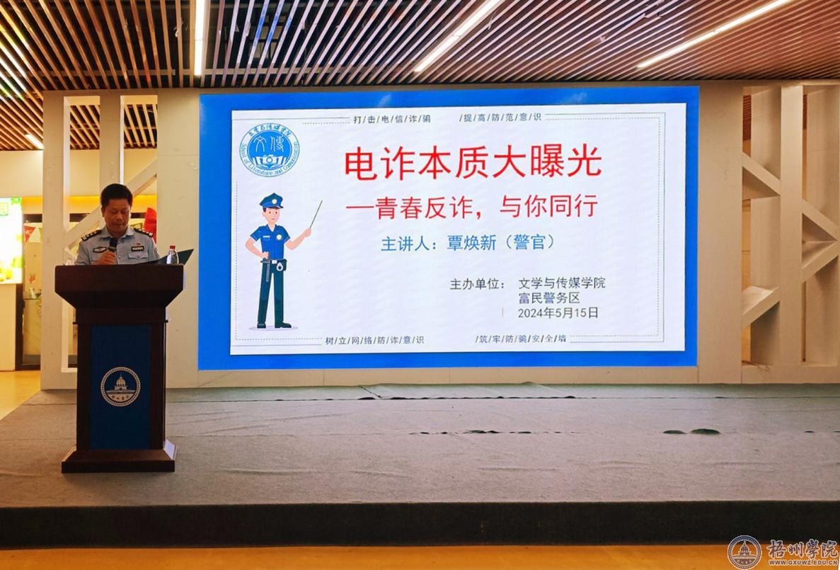 5月13日下午,一场主题为《电诈本质大曝光——青春反诈,与你同行》的防诈骗知识讲座在体育馆负一楼邑谷中心举行。本次讲座邀请了富民警务区的覃警官讲述诈骗案例,阐述了诈骗手段的特点和危害,全面曝光电信诈骗的本质,提高同学们反诈骗意识,时刻保持警惕,不要轻易落入诈骗陷阱。