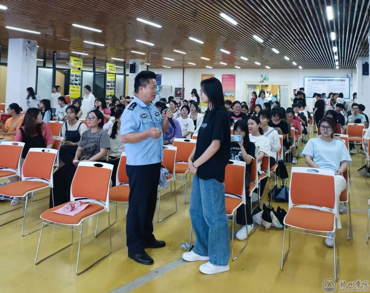 现场的同学们全神贯注地聆听,积极与覃焕新警官交流互动,在学习中强化了安全意识,提升了防范能力。