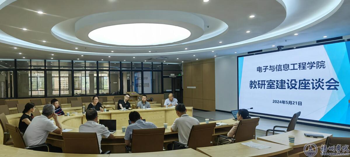 为了加强专业建设,推进教学改革,5月21日电子与信息工程学院在明科楼1108会议室召开教研室建设座谈会。信息与通信工程广西一流学科、电子信息工程国家级一流专业负责人玉振明教授,电子与信息工程学院班子成员、专业教研室主任,大数据与软件工程学院的计算机科学技术专业和软件工程专业教研室主任参加会议。会议由电子与信息工程学院党委书记韦衡冰主持。
