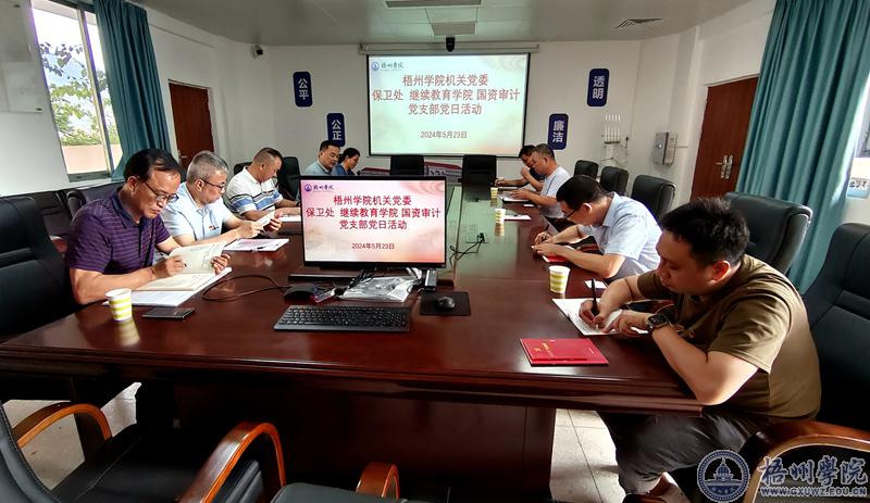 为深入开展党纪学习教育,引导广大党员树牢理想信念,听党话跟党走,5月23日,学校机关继续教育学院党支部、国资处党支部、审计处党支部、保卫处党支部联合开展“支部联学共建”活动,形成“互帮互学、共商共建”的联学共建机制。各支部书记领学党章、党纪,并解读了主流媒体刊发的权威文章。