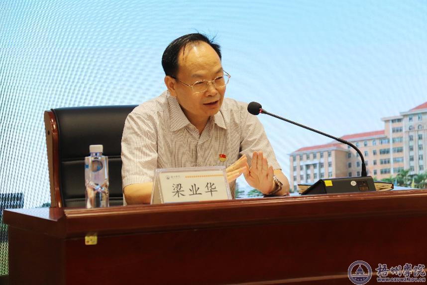 梁业华作动员讲话。他强调,基层党务干部是学校党建工作的中坚力量,肩负着推动学校党的建设的重任。培训有助于基层党务干部系统学习基层党组织建设、发展党员规范化等党务工作知识,掌握党务工作方法,提高工作水平。对于刚刚从事党务工作的同志,培训是系统学习的难得机会;对于长期从事党务工作的同志,培训是总结党务工作规律、进一步提高党务工作水平的有效平台。本次培训班通过学习党的最新理论成果、政策法规和党建工作经验,通过专题辅导、现场教学和交流研讨等形式,进一步加强基层党务干部对发展党员工作的认识和把握,熟练掌握工作业务,掌握支部工作的基本方法,全面提升基层党务干部整体素质和能力水平,推动党支部建设和基层党建工作落细落实。为确保培训达到预期效果,梁业华对培训班全体学员提出了四点要求:一是提高站位,统一思想,充分认识培训班的重要意义;二是融入日常,注重结合,全面提升基层党建工作质量;三是善于学习,潜心探究,锻造能力过硬的党务干部队伍;四是强化纪律,端正态度,确保圆满完成培训任务。