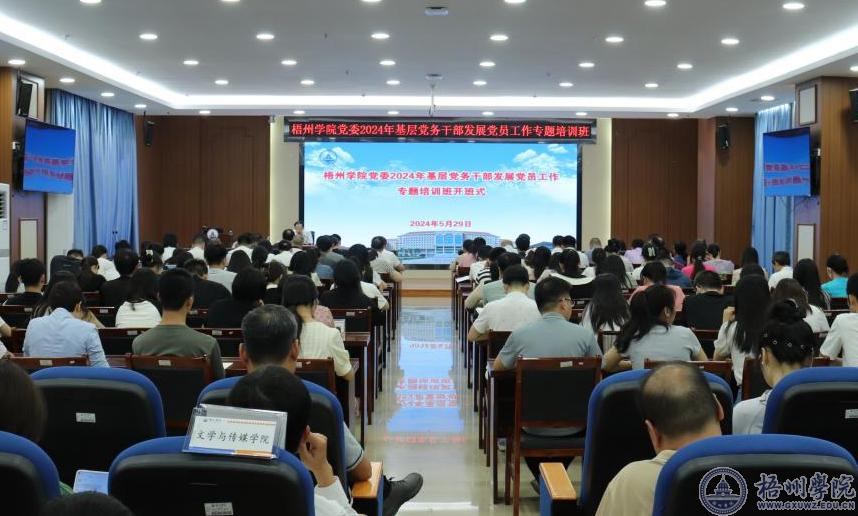 5月29日下午,我校在明科楼一楼学术报告厅举行2024年基层党务干部发展党员工作专题培训班开班仪式。学校党委副书记梁业华出席开班仪式,党委组织部副部长刘洪君主持会议。各二级党委(党总支)书记、副书记,各党支部书记、副书记,学院组织员等140余名基层党务干部参加开班式。