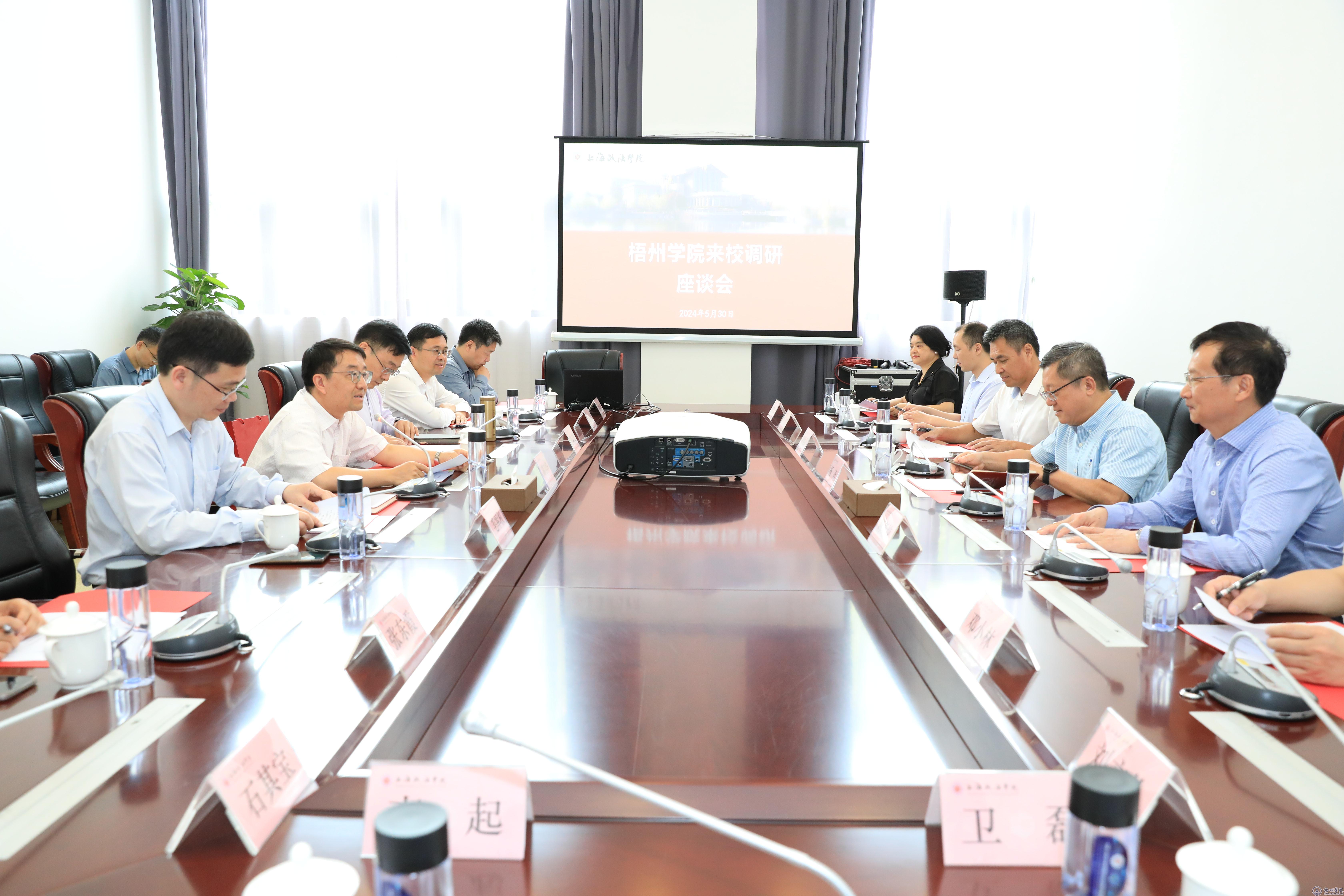 在南通大学考察期间召开了座谈会,座谈会由莫晨宇副校长主持。施佺副校长感谢梧州学院对南通大学的支持,希望两校互学互鉴,充分依托各自的人才、学科、科研优势,围绕发展定位深化交流合作,打造校际合作典范,谱写高质量发展新篇章。杨奔校长介绍了梧州学院的发展历史,高度评价南通大学这所百年老校所取得的成就,对该校给予莫晨宇副校长的关心和支持表示由衷感谢,并希望以此次交流为契机,就教育教学、学科建设、综合管理、人才队伍建设等工作深入交流,开展务实合作,特别是要针对性学习借鉴南通大学高质量发展实践经验,推进我校高水平建设。
