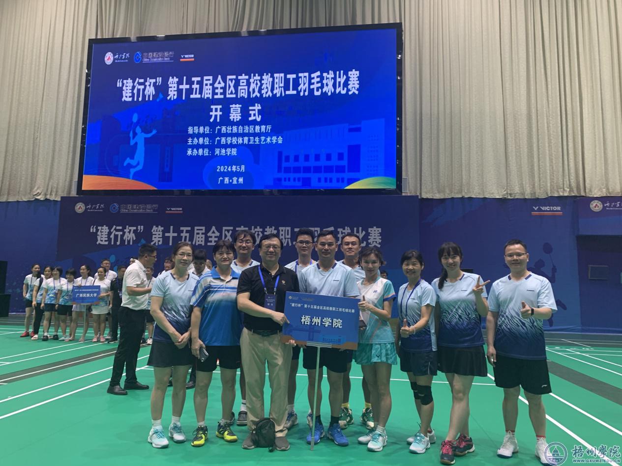 5月28日至6月1日,广西第十五届全区高校教职工羽毛球比赛在河池学院举行,我校派出队伍参赛。经角逐,我校选手范生汝、覃雄彪获高校校长组双打亚军,范生汝获校长本科组男子单打第四名。