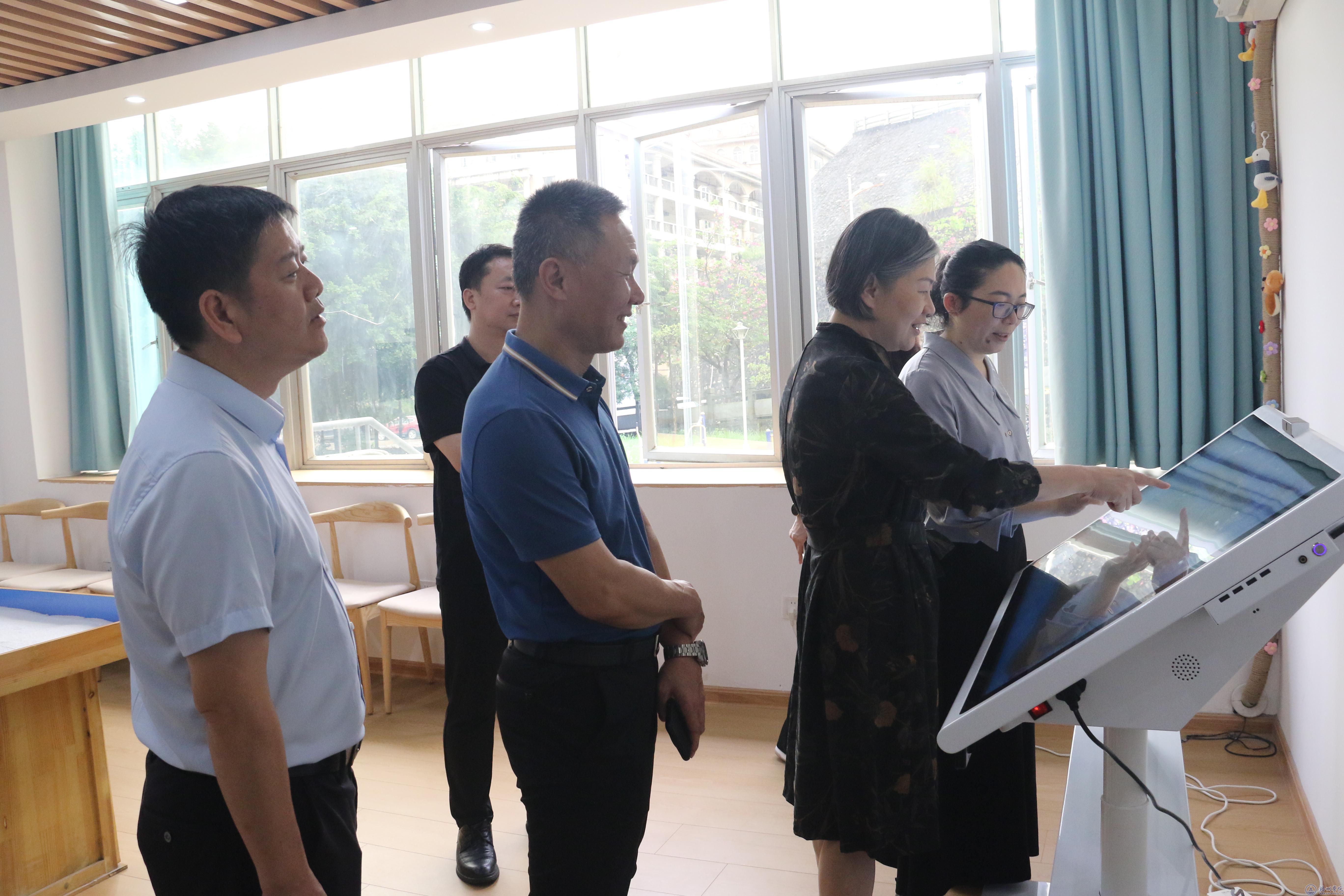 苏颖副市长先后参观了大学生综合发展中心、大学生就业指导中心、大学生国防教育展厅和心理健康教育中心,实地了解我校开展大学生思想政治教育、国家安全教育、心理健康教育和就业创业工作等情况。在心理健康教育中心,苏颖副市长认真听取了中心运行情况汇报,并亲切的与老师们交流,了解心理健康教育课程建设和大学生心理普查及危机干预情况,每到一个功能室都详细的了解功能和运行效果,并亲自进行体验,她对我校安全、教育,特别是心理健康教育工作的做法和成效给予了充分肯定,并现场进行了工作部署,希望学校能够协助市教育局开展中小学心理健康教育工作体系建设和探索。