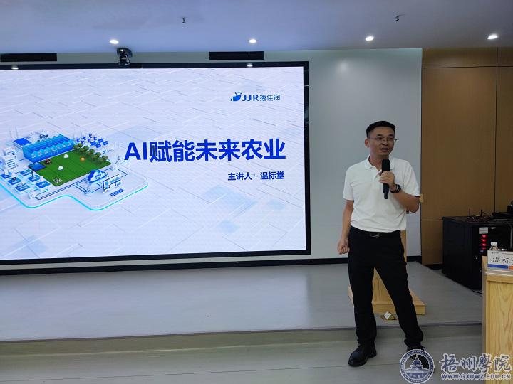 6月5日下午,捷佳润科技集团股份有限公司董事长、总经理温标堂在明科楼11楼会议室为经济学院数字经济教研室教师、2023级数字经济专业学生作了题为“AI赋能未来农业”的专题讲座。讲座由经济学院院长杨诚主持。经济学院120余名师生参会。