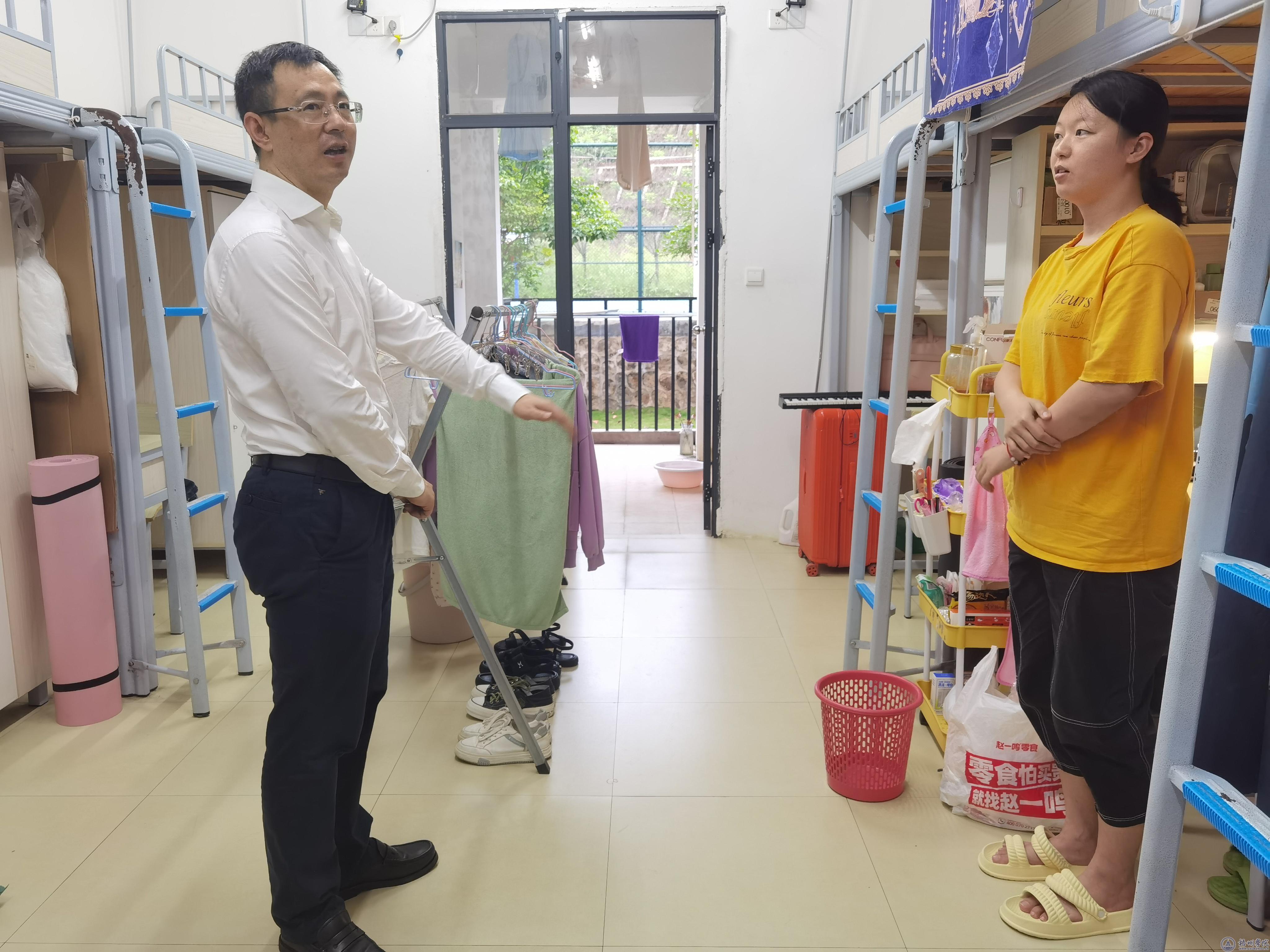 在学生宿舍和实训室走访中,童晓晖书记实地了解学生的学习生活现状,并为学生送去关心和问候。