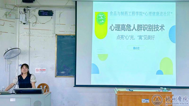6月7日,针对学生社区的主要管理人员——宿舍长,学院组织了《点亮“心”光 “寓”见美好——心理高危人群识别技术》专题培训,由学校兼职心理咨询教师蒋小兰主讲。她从宿舍长的职责出发,结合相关案例,对宿舍常见的人际纠纷和心理危机识别等进行了专题讲解,达成“宿舍和谐、人人有责”的共识。